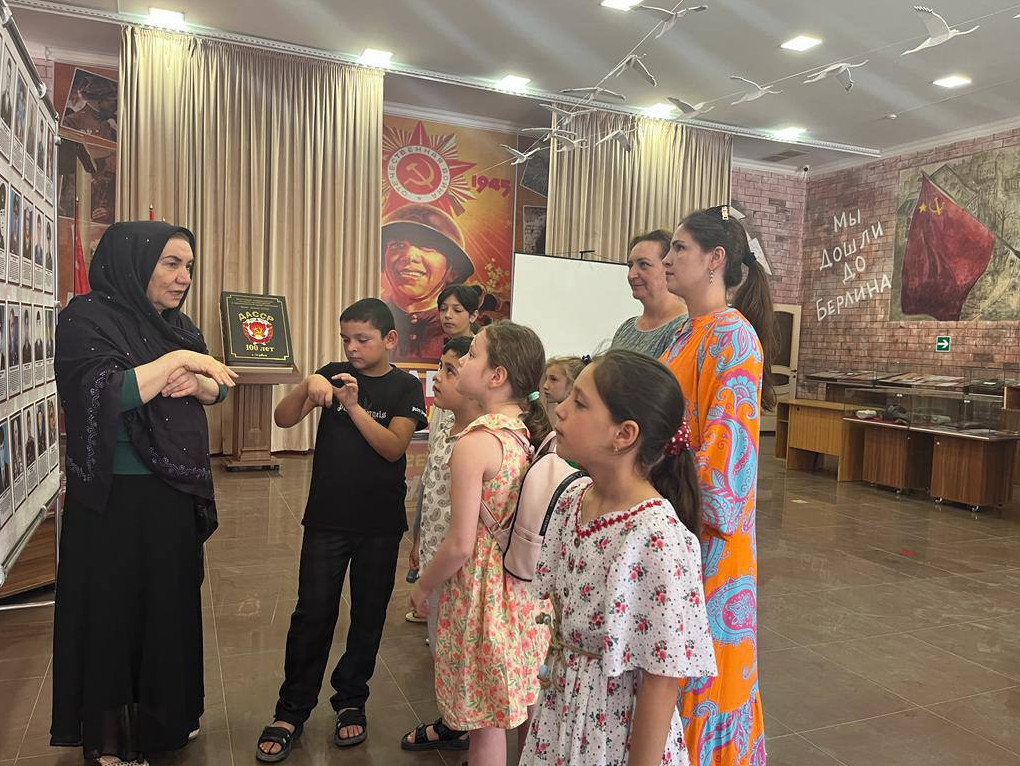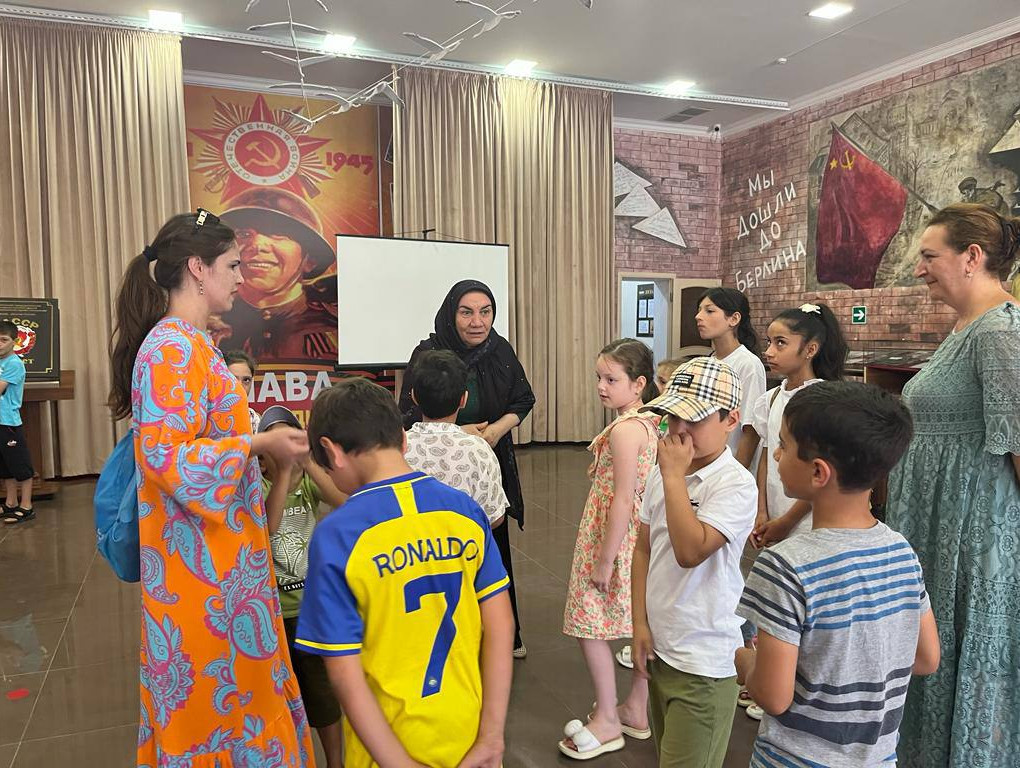 И сегодня 3 августа 13 подопечных детей находящихся на обслуживании в центре социального обслуживания населения города Дербент посетили музей Боевой Славы. В музее дети познакомились с экспонатами времен ВОВ и затаив дыхание слушали рассказ экскурсовода Гальпери Мирзабалаевой о героях - земляках, участниках СВО и об их боевых подвигах.