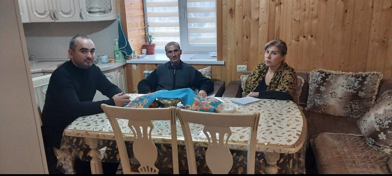 Специалист по социальной работе Алфида Бабаева и юристом Кязимом Гаруновым центра социального обслуживания населения совместно с координатором филиала Государственногофонда поддержки участников специальной военной операции "Защитники Отечества" по РД Анжелой Рустамовой посетили родителей погибшего участника СВО Велибекова Исамудина.