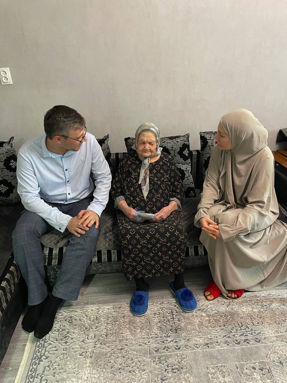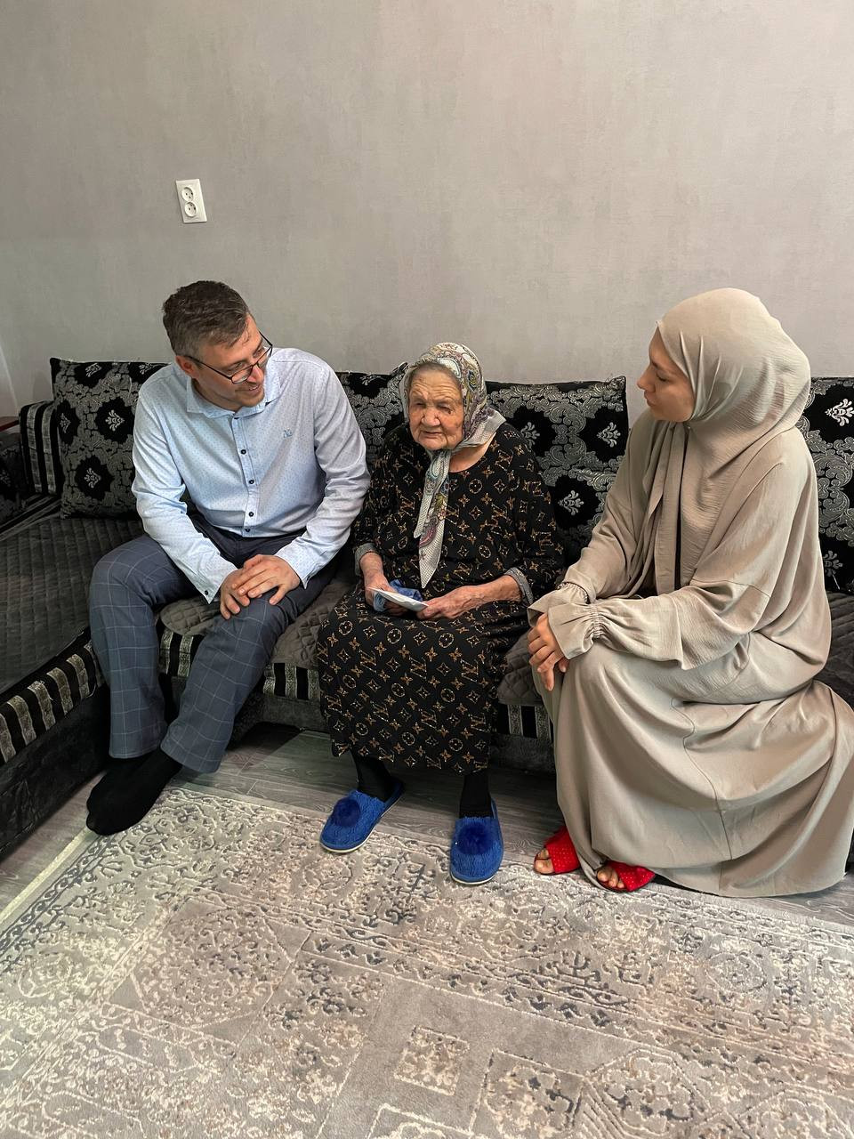 30 мая 2023 г., Директор ГКУ РД УСЗН в МО "город Буйнакск" Рашадов Р.М. и и.о зам. директора Гаджиев Ю.М. в рамках исполнения распоряжения Правительства Республики Дагестан от 22.05.2023 г. № 209-р, посетили участника Великой Отечественной войны Белялову Галину Маджидовну.