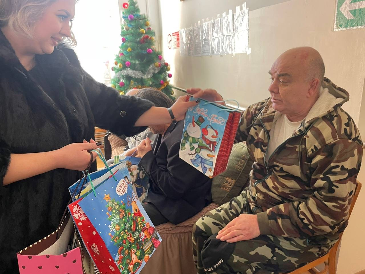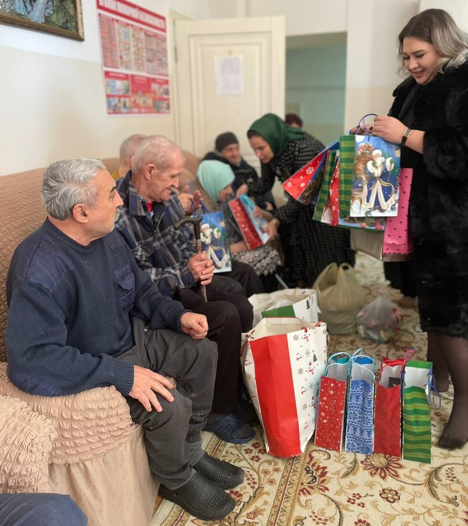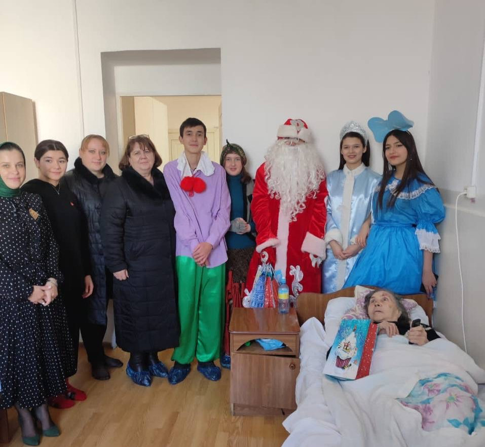 Сегодня в Государственном бюджетном учреждении Республики Дагестан Комплексный центр социального обслуживания населения в муниципальном образовании "город Кизляр" отделении временного пребывания граждан пожилого возраста и инвалидов "Милосердие" поздравить подопечных с новогодними поздравлениями и подарками пришли Долбня Ю. А. МКУ "Управление образование" муниципальный координатор советников по воспитанию, Советники КГ6 и СОШ7 Салимсултанова С. И. и Гаджиалиева П. К. Директор СОШ9 Лещенко Е. А., Волошина Л. С. руководитель волонтерского движения со своими ребятами. В этот чудесный праздник Новый год, хотелось бы пожелать исполнения всех заветных желаний, крепкого здоровья, счастья и добра! Всего наилучшего в наступающем году!