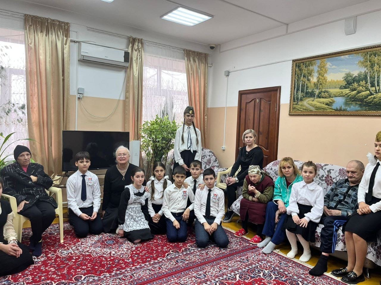 Сегодня 22.02.2023 года ученики с учителями Совхозской школы 6 Кизлярского района пришли поздравить с 23 февраля подопечных отделения граждан пожилого возраста и инвалидов Кизлярского района. Дети выступили с танцами и песнями, где жители дома престарелых были очень довольны, а также подпевали школьникам.