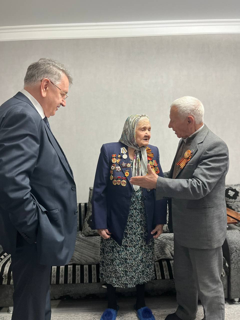 Сегодня, в Буйнакске живет один ветеран Великой Отечественной войны Белялова Галина Маджидовна. В преддверии празднования 78-й годовщины Победы в Великой Отечественной войны, Галину Белялову пришли поздравить Депутат Народного Собрания РД Ильяс Мамаев., Заместитель Главы ГО «города Буйнакска» Абдула Багаутдинов., Начальник УСЗН «города Буйнакск» Рашад Рашадов., И.о зам.начальник Юсуп Гаджиев., начальник отдела социальной поддержки Зарема Солтанова и Министр образования РД Яхья Бучаев.