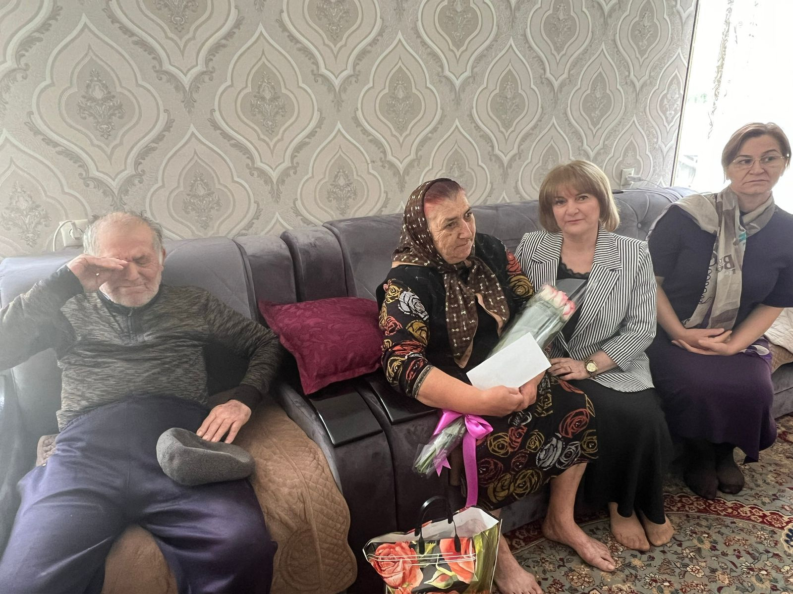 Заместитель главы Минажат Мурадова, директор КЦСОН Саният Курбанчиева и директор УСЗН Джарулах Джарулаев поздравили супругов, которые прожили вместе 50 и более лет: семью Джафаровых - Пирмагомеда Саидовича и Мугибат Джафаровну, семью Абдулкеримовых - Ибрагима Абдулкаримовича и Муъминат Магомедовну.