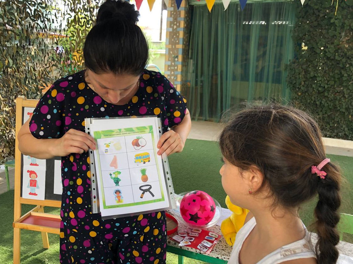 Наиболее распространенной формой является замена свистящих и шипящих. Накануне, на фронтальном занятии прошедшем в центре, логопед Гюльнара Султамутова применила новую для ребят методику.