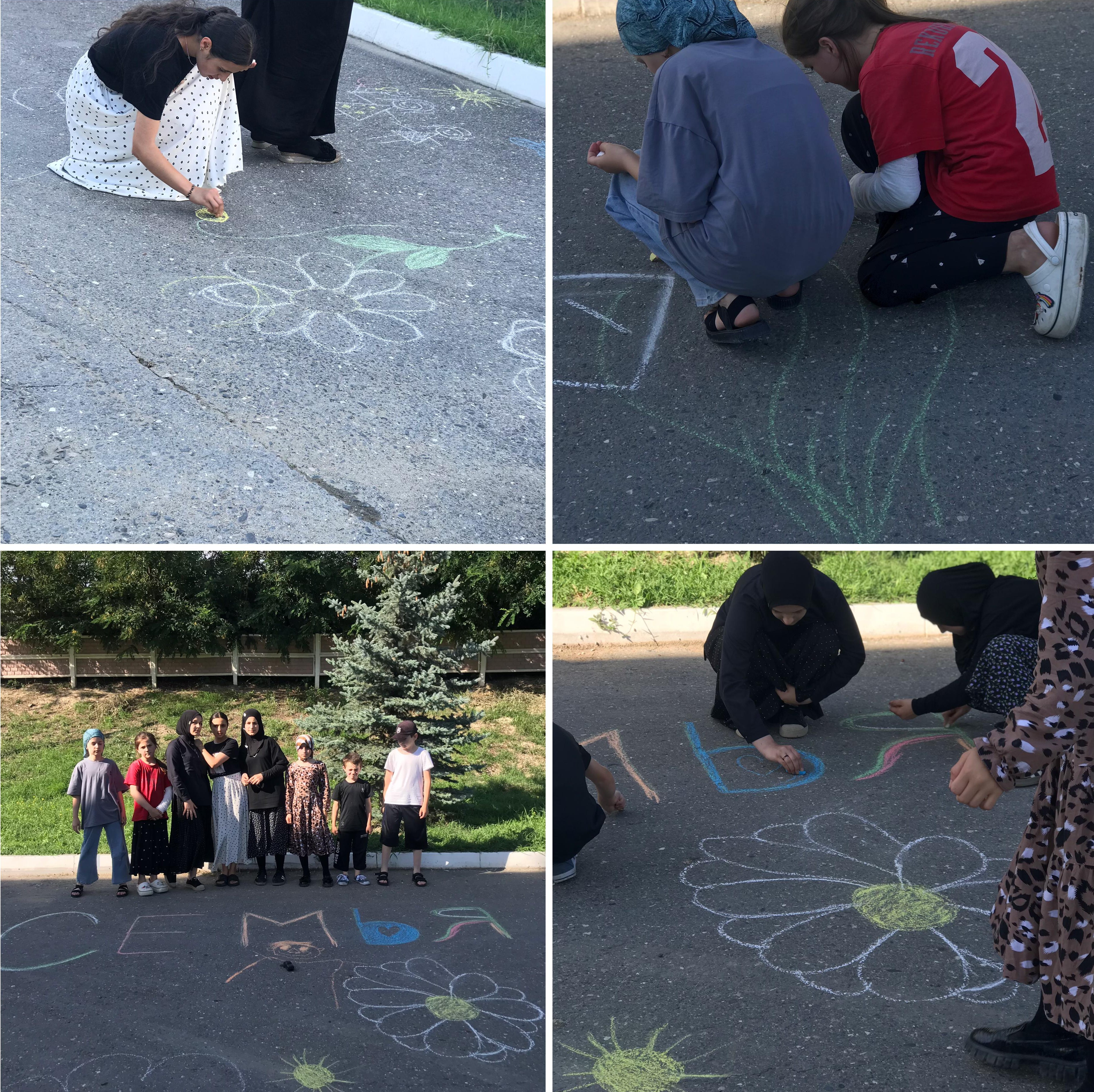 Был проведён конкурс детских рисунков ромашки на асфальте
