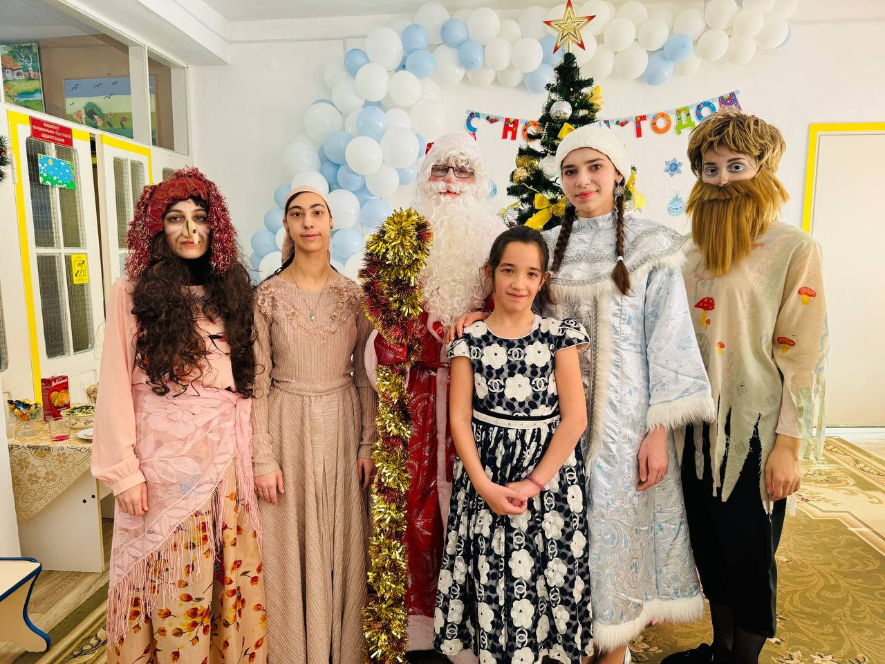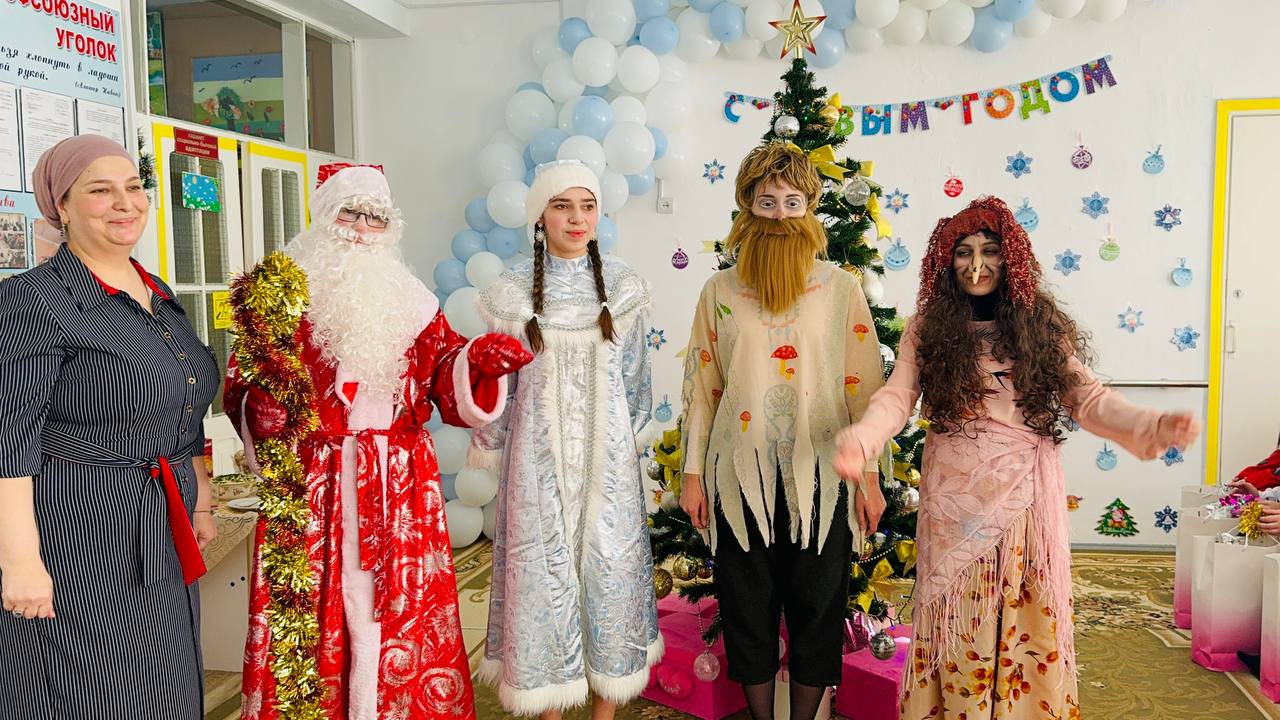 Детей на протяжении всего праздника развлекали сказочные персонажи Дед Мороз, Снегурочка, Леший, баба Яга, роли, которых исполняли работники центра и подопечная Магомедова Майсарат.