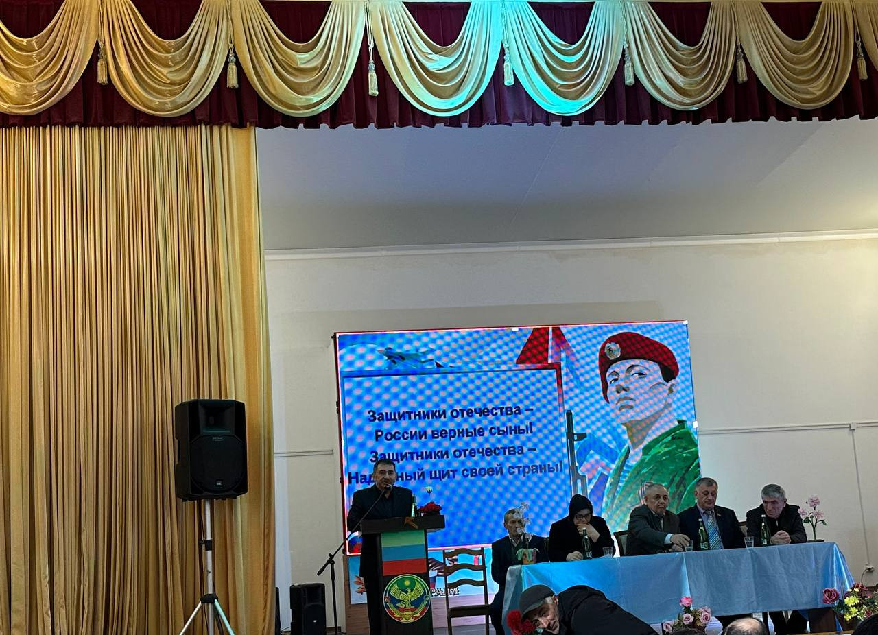 Ведущий мероприятия предоставил слово депутату НС РД«Рутульский район» Абдуллаеву Шафи Кафлановичу , который поздравил всех защитников Родины.