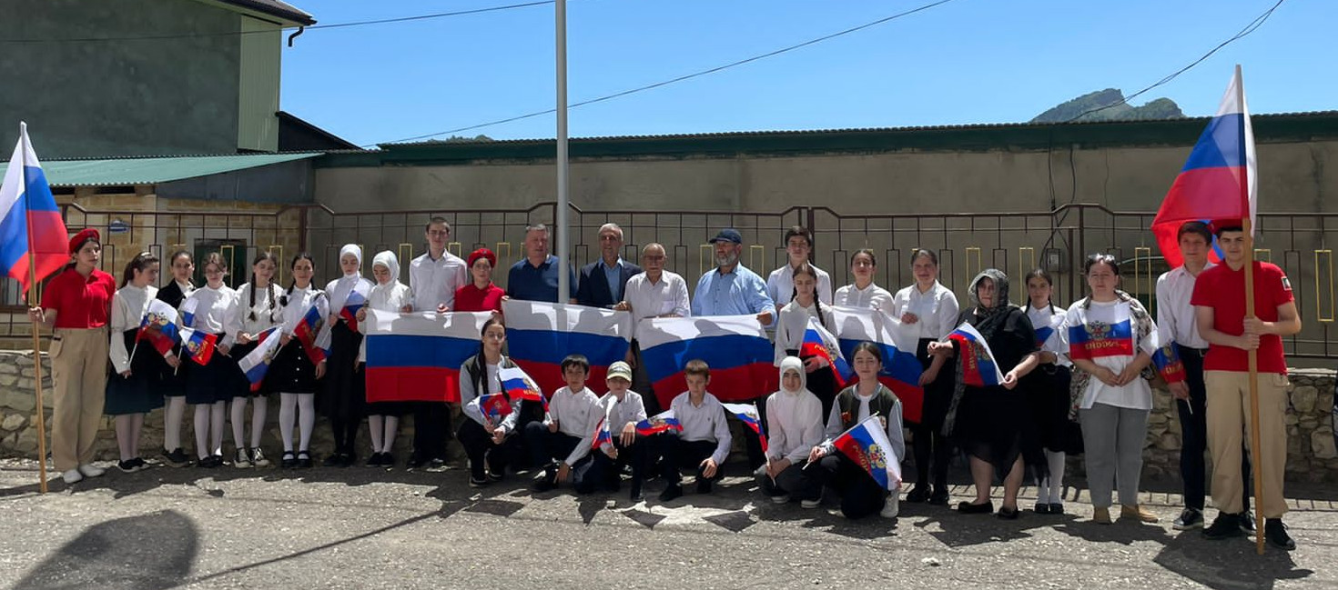 Ученики Гунибской СОШ совершили торжественный марш с триколором от школы до площади Гунибского района и приняли участие в торжественном мероприятии в Доме Культуры района.