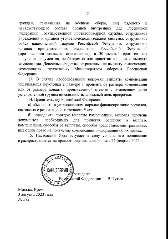 Президент РФ Владимир Путин подписал указ «О мерах по обеспечению обязательного государственного страхования жизни и здоровья граждан Российской Федерации, пребывающих в добровольческих формированиях».