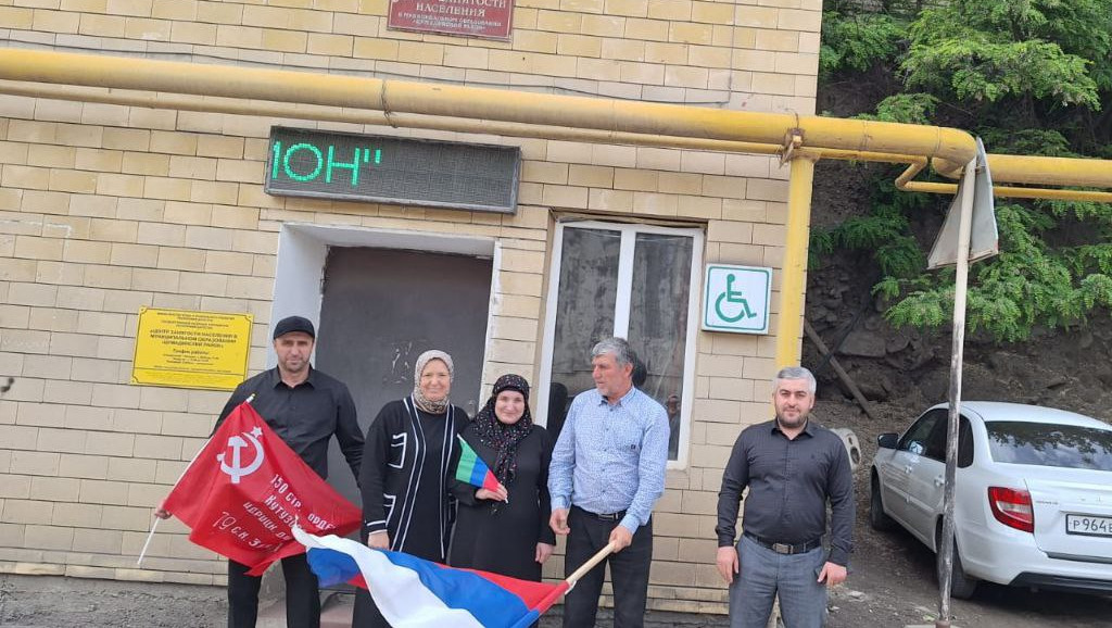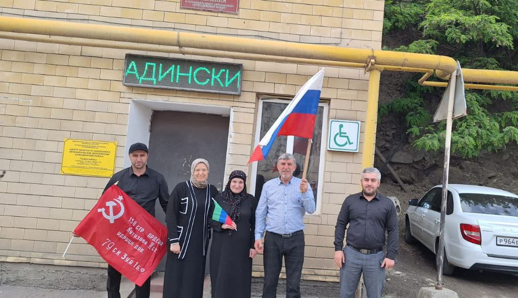 Во исполнения письма Минтруда РД от 27.04.2024 года №14-17-12/4910/24 специалисты подведомственного учреждения Минтруда РД «Центра занятости населения» в МО «Цумадинский район», сегодня 06 мая 2024 года приняли участие в районном авто - и мотопробеге, развернули флаг Знамени Победы, вывесили флаги на фасаде здания центра занятости населения и на автомобилях.