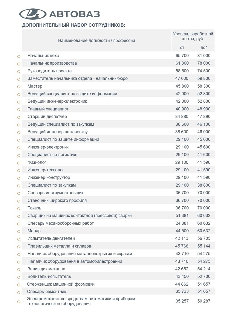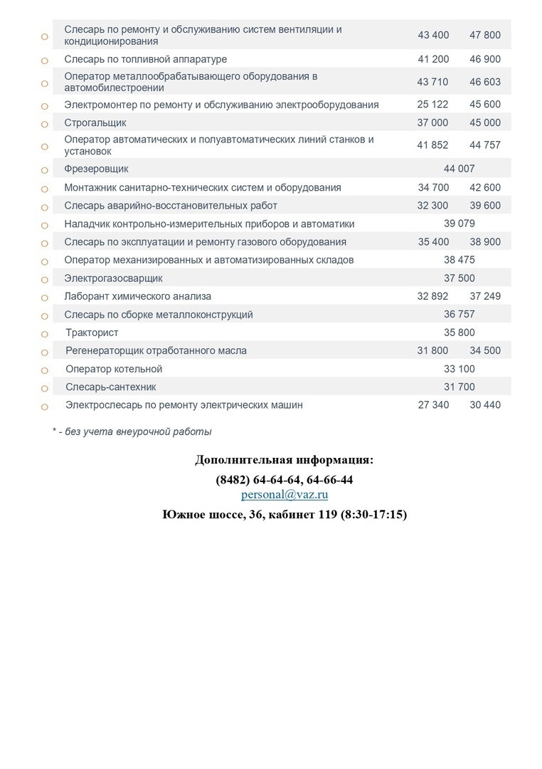 АО «АВТОВАЗ» ведёт набор на постоянную работу сотрудников по различным рабочим профессиям, а также линейных руководителей, инженерный персонал и IT-специалистов