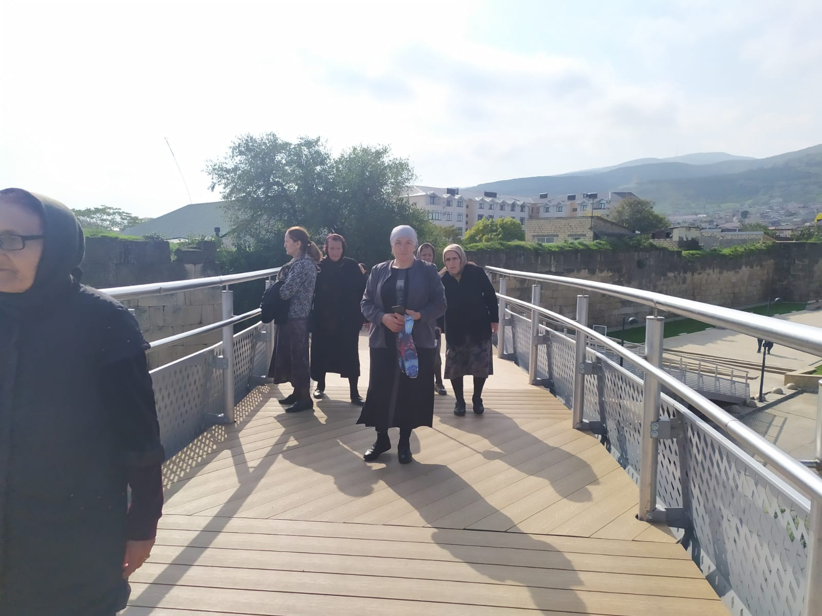 Еще один туристический объект который мы прошли — пешеходная смотровая на улице Мамедбекова, пешеходная смотровая протягивается вдоль крепостной стены и входит в "Туристическую милю" — от крепости Нарын-Кала до набережной. На этом же пути туристы попадают на самый большой мультимедийный фонтан в России в парке имени Низами Гянджеви и на другие достопримечательности.