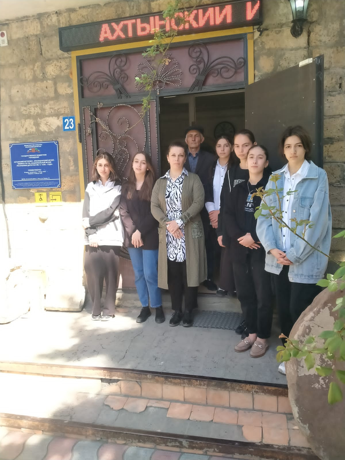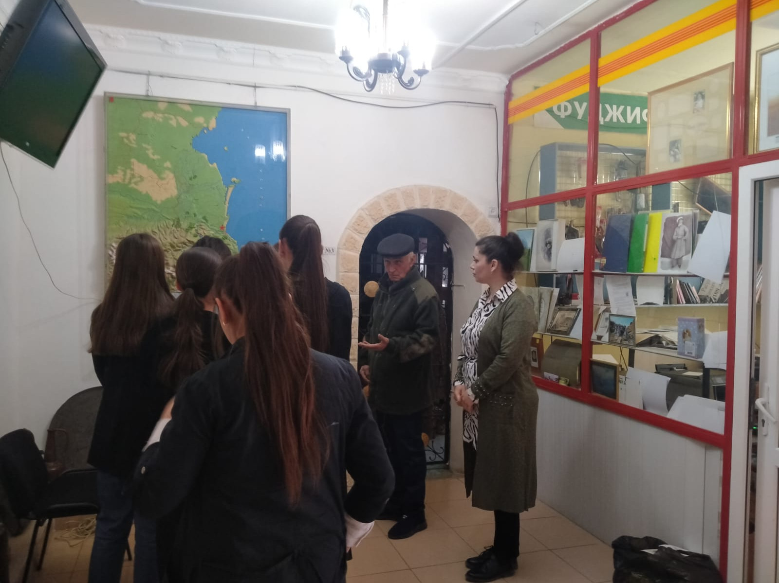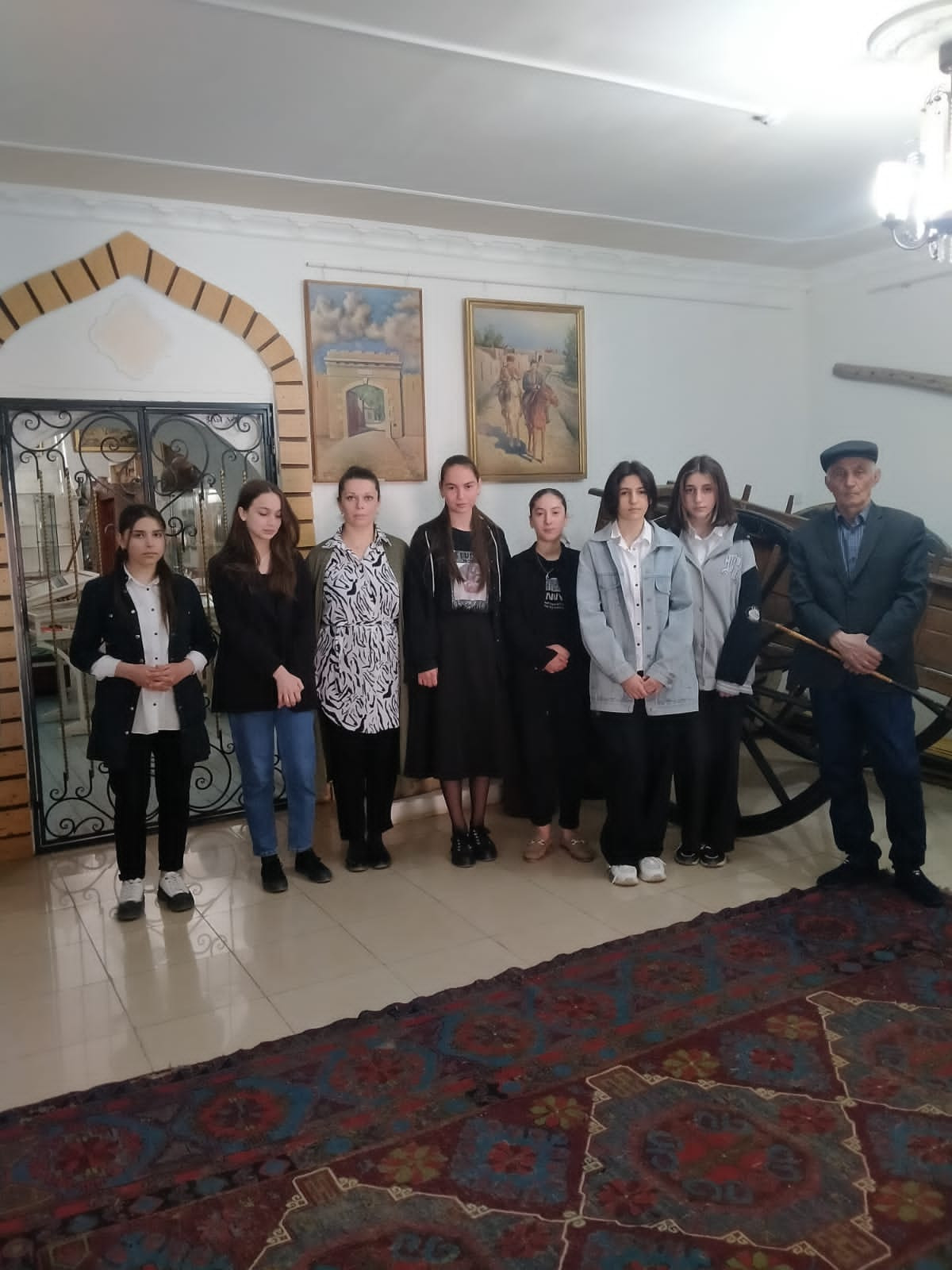 28.04.2023г. был организован профессиональный тур в краеведческий музей Ахтынского района с учениками 11 класса. Директор Дагларов Ахмед рассказал учащимся о ценных экспонатах музея.