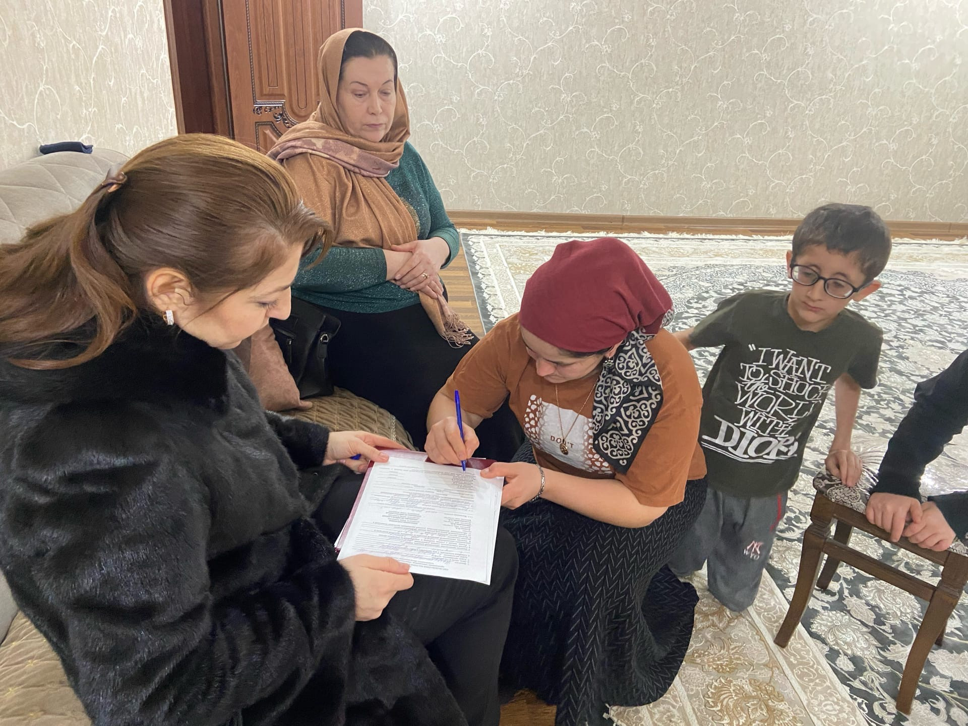 Заведующая отделением социального обслуживания на дому детей и семей с детьми Кусаева Н. А. и специалист по работе с семьей Аллахвердиева А. В. провели обследование жилищно-бытовых условий и проверку нуждаемости в социальном обслуживании на дому семей с детьми-инвалидами в с. Вперед по Кизлярскому району.