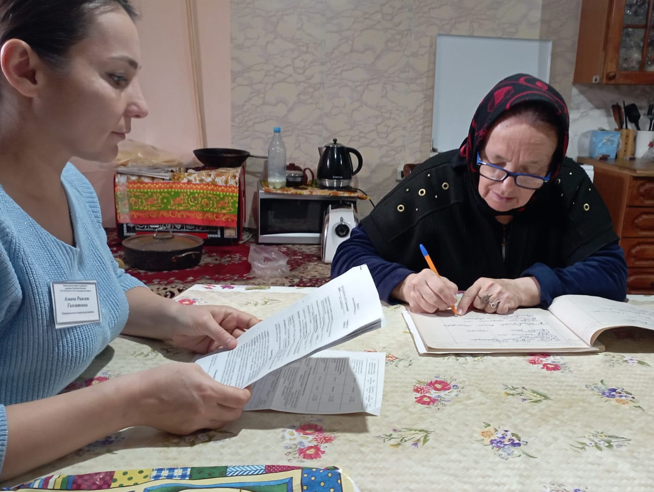 Проверка специалистом по социальной работе ГБУ РД КЦСОН в МО «Сергокалинский район» Алиевой Р. работников за оказанием социальных услуг на дому.