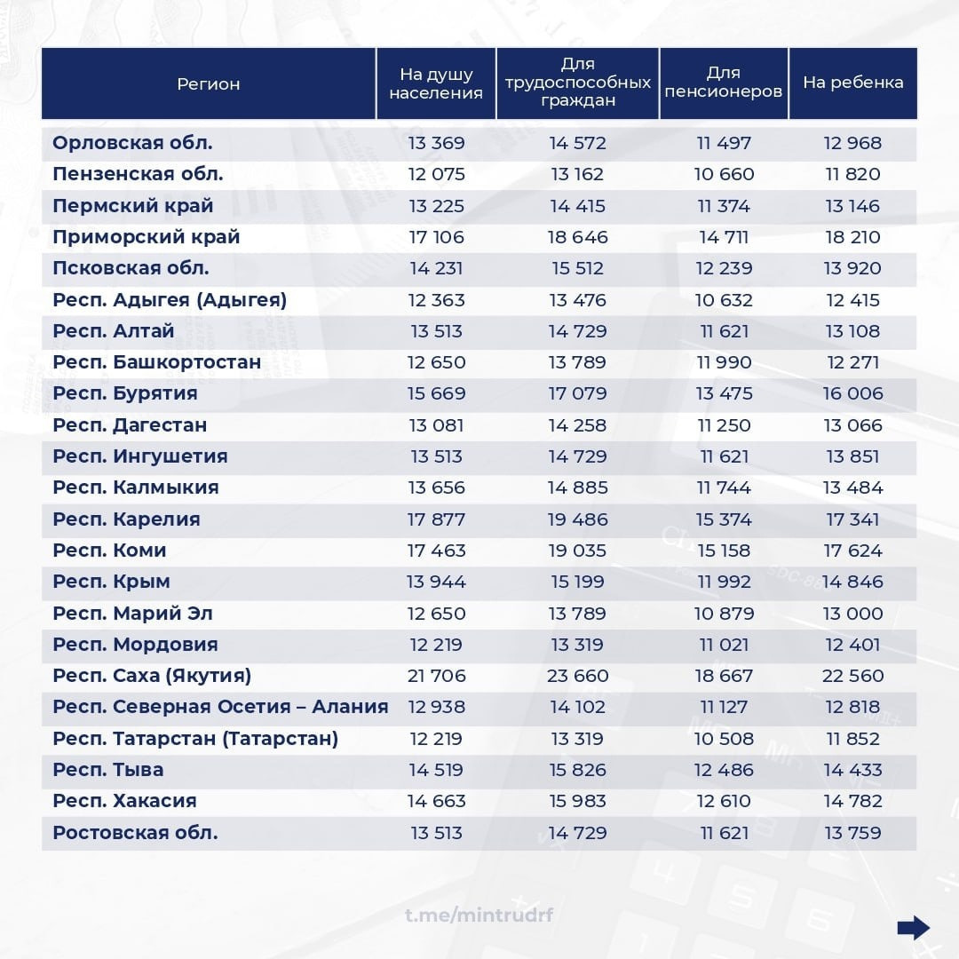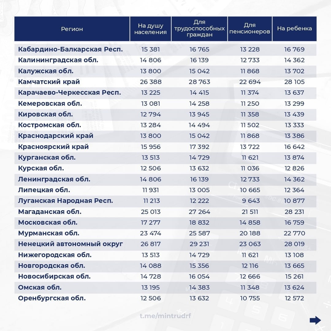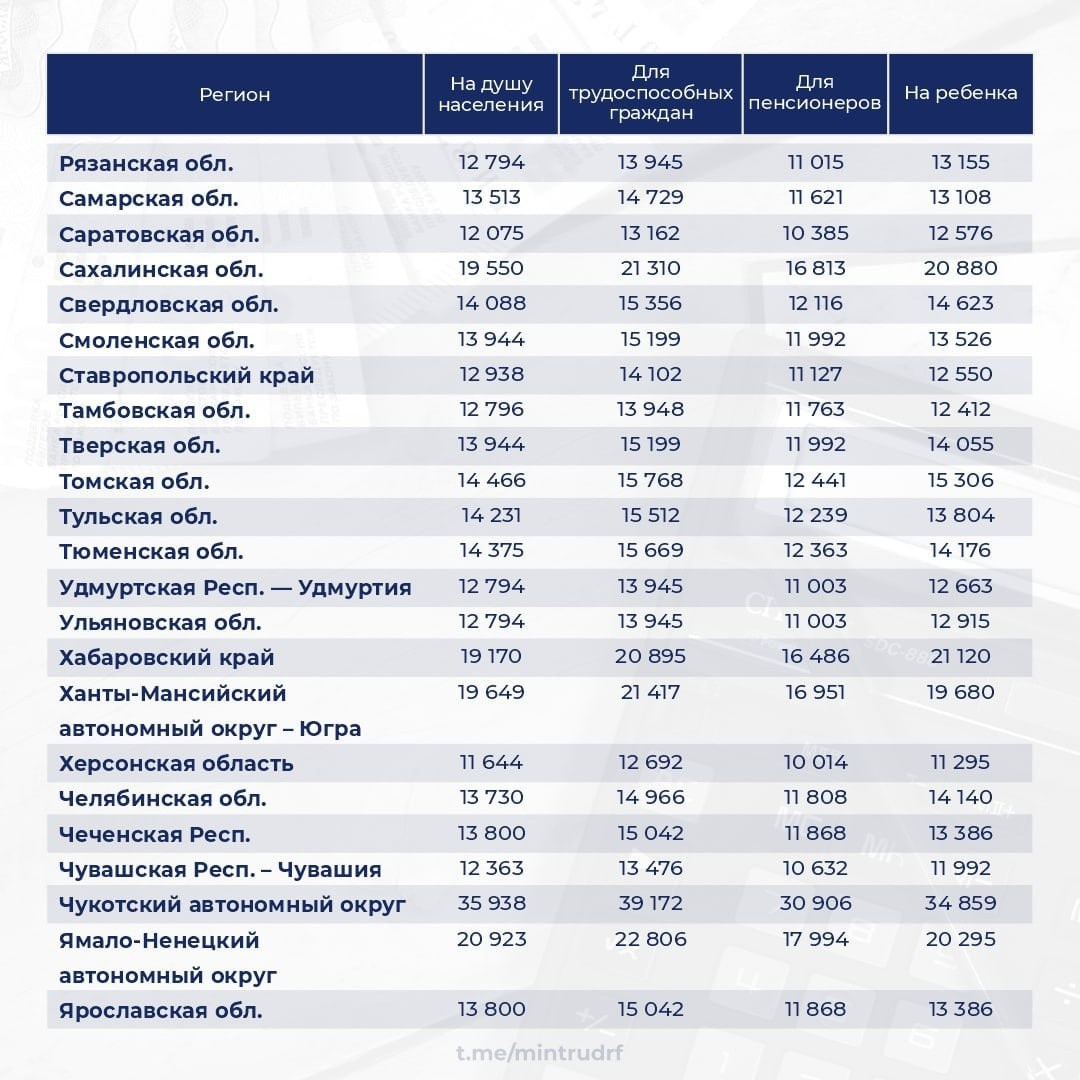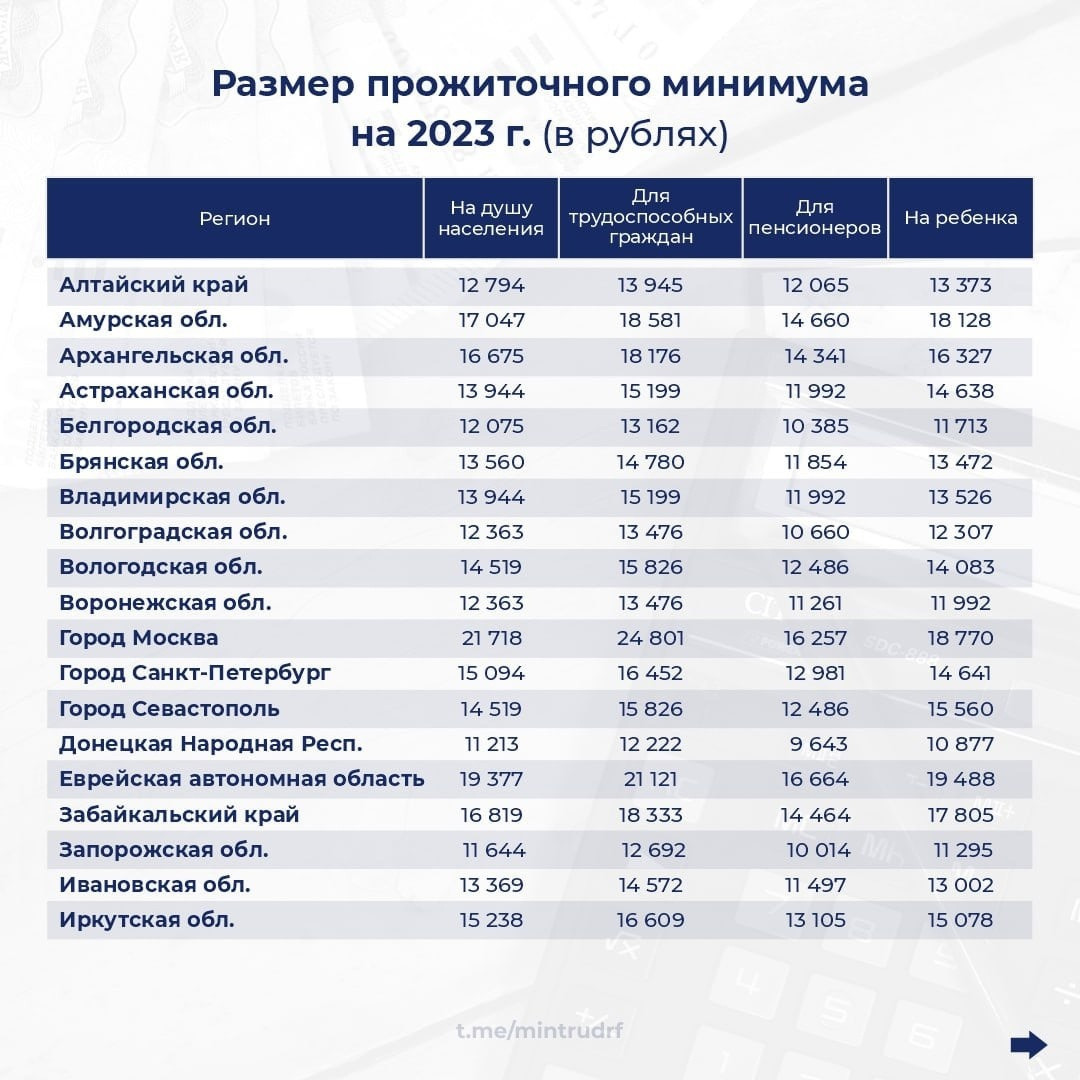Прожиточный минимум в регионах России на 2023 год