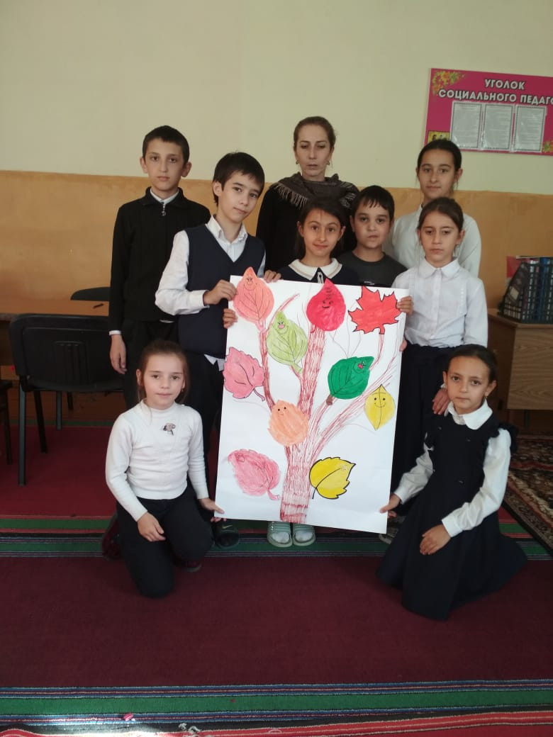 Психолог отделения дневного пребывания Гаджиева Д. М провела тренинговые занятия на тему: " Осеннее дерево дружбы". Совместное творчество, внимание, развитие воображения, доверие и дружба друг другу.