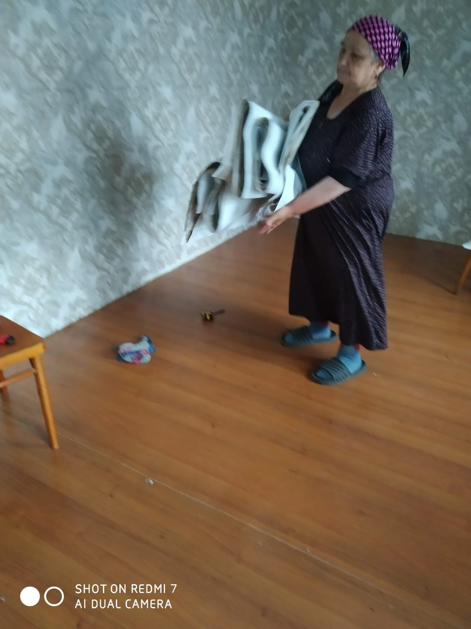 Мобильная бригада из соцработница в составе Эрзихановой С. и Ибрагимовой З. навестили подопечную Центра Абдулгамидову Х. из с.Цинит. Дома у пожилой провели работы по косметическому ремонту квартиры. Они провели работы по оклейке обоев в комнате у пожилой.