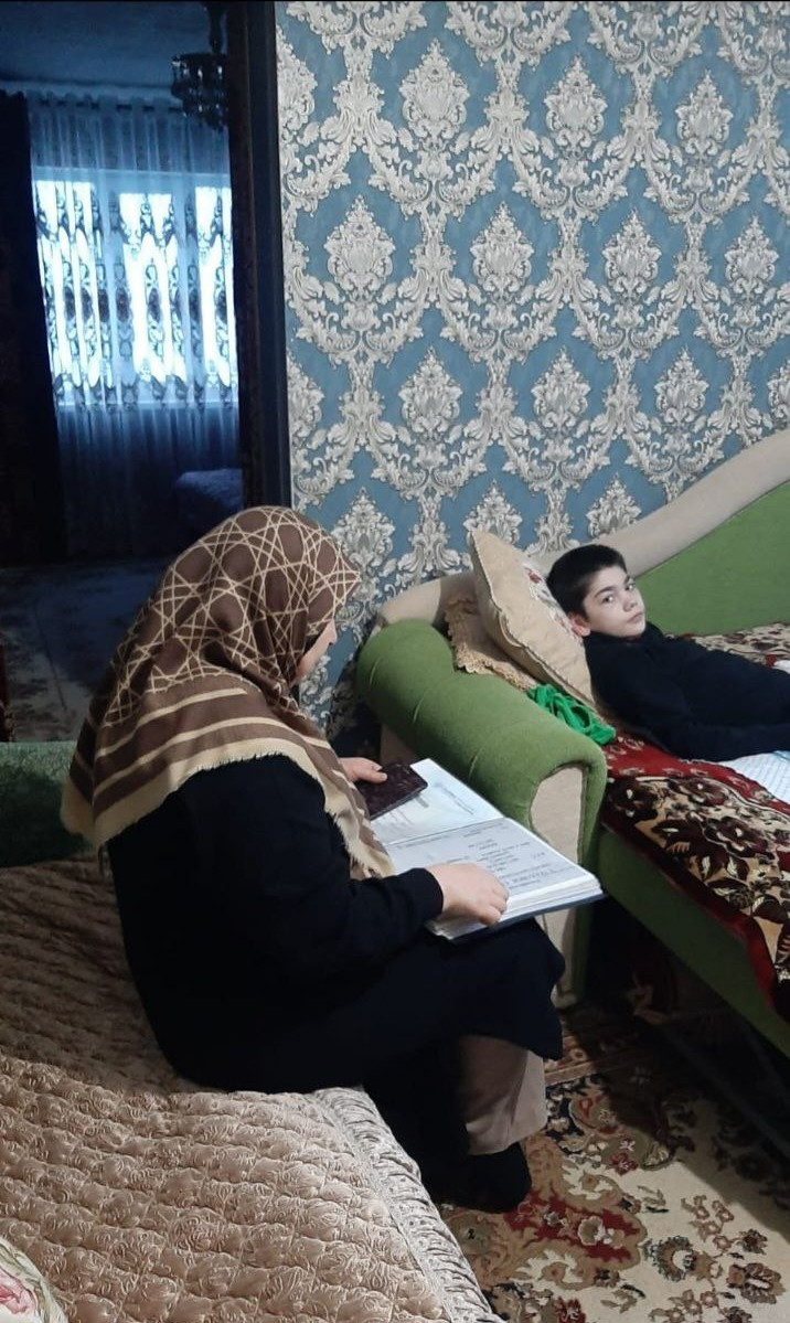 Специалист по социальной работе отделения социального обслуживания на дому детей и семей с детьми Исмаилова Сайганат с подопечными проводить социальный - патронаж .