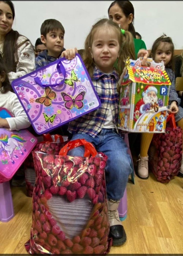 Вместе с добрыми пожеланиями здоровья, исполнения желаний, радости и улыбок более 30 ребят получили сладкие Новогодние подарки.