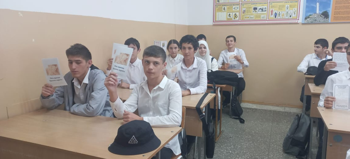 Специалист по социальной работе Хидирбекова А.Г. посетила СОШ № 4 и раздала буклеты на тему: «Вред курения», «Пять причин бросить курить».