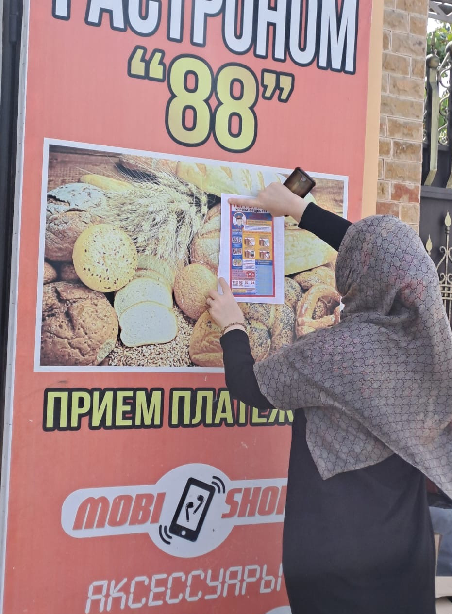 Специалистами по социальной работе социально-реабилитационного центра г.Кизилюрт были расклеены памятки "Терроризм- угроза общества".