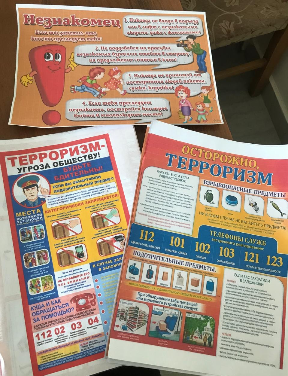 В памятках подробно расписаны правила поведения в случае угрозы теракта и обнаружении неизвестных предметов.