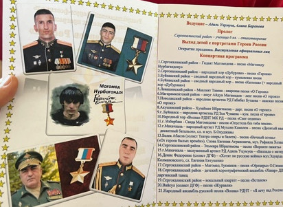 Социальный педагог Муртазалиева Р. , социальный педагог Алишихова Р., психолог Мутаева А., специалист Багомедова П. посетили Республиканский форум -фестиваль Памяти героев России . Форум- фестиваль прошёл в школе им. Магомеда Нурбагандова . В фестивале приняли участие гости со всего Дагестана . Были приглашены участники СВО , а также их семьи .Прозвучали патриотические песни , а также народные танцы . Мероприятие прошло организованно , душевно и волнительно .