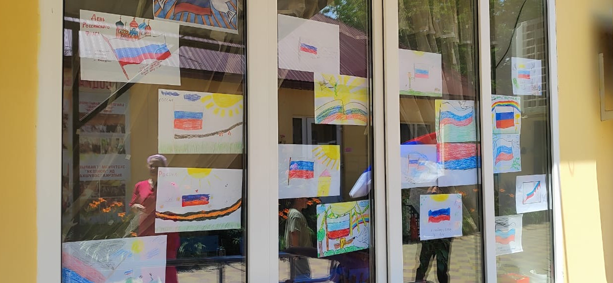 Подопечные ГКУ РД СРЦН в МО "г.Кизилюрт" приняли участие во флешмобе "Флаги России", развесив на окнах Центра рисунки, которые сами нарисовали. Акция приурочена ко Дню России.
