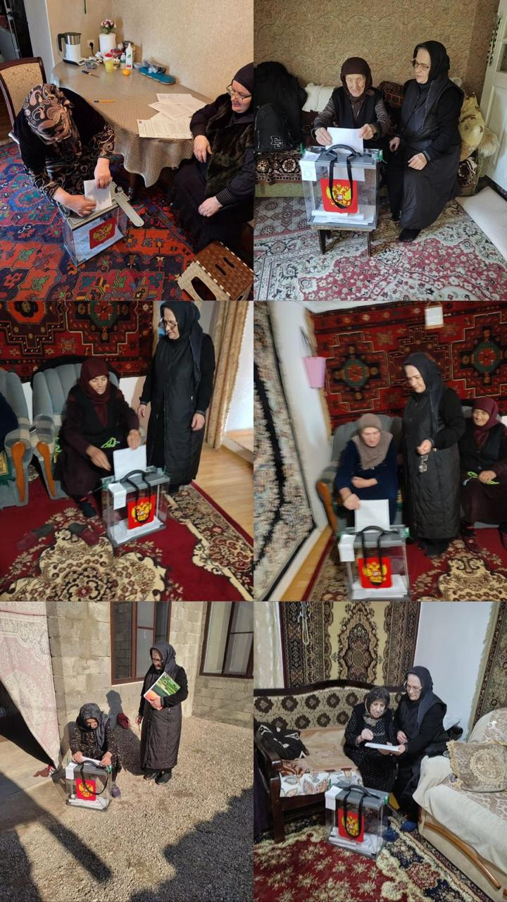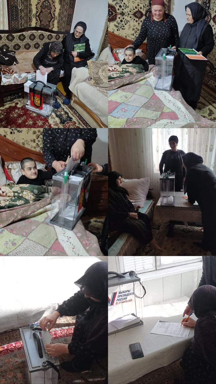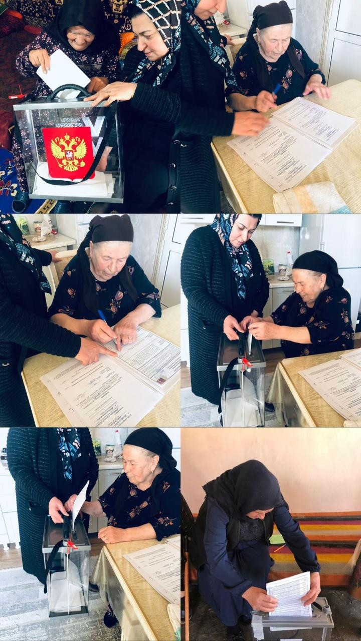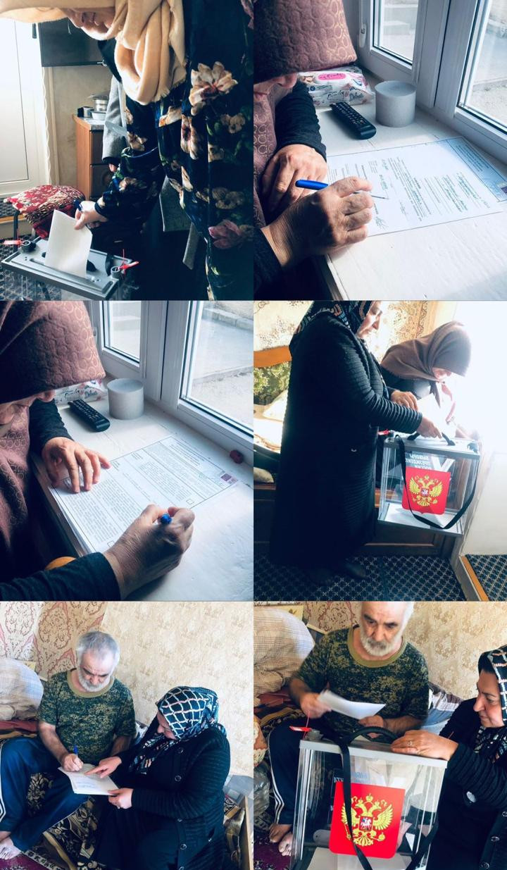 ???Социальные работники комплексного центра социального обслуживания населения «Левашинского района» организовали явку подопечных для выборов президента России и помогли проголосовать.