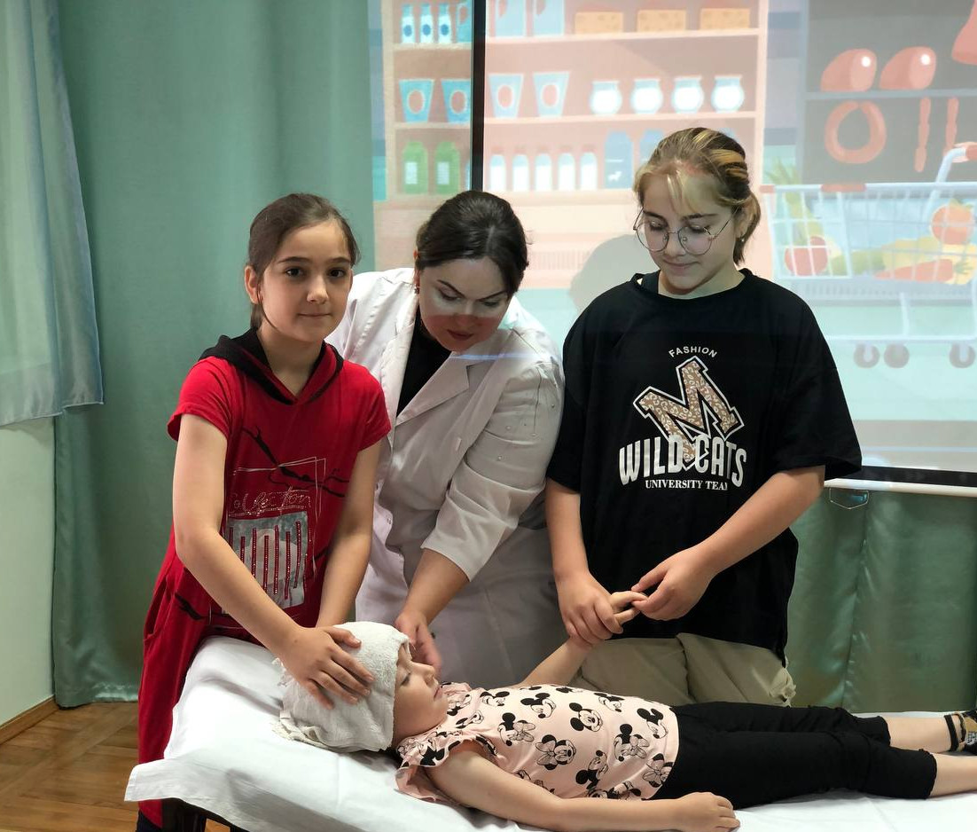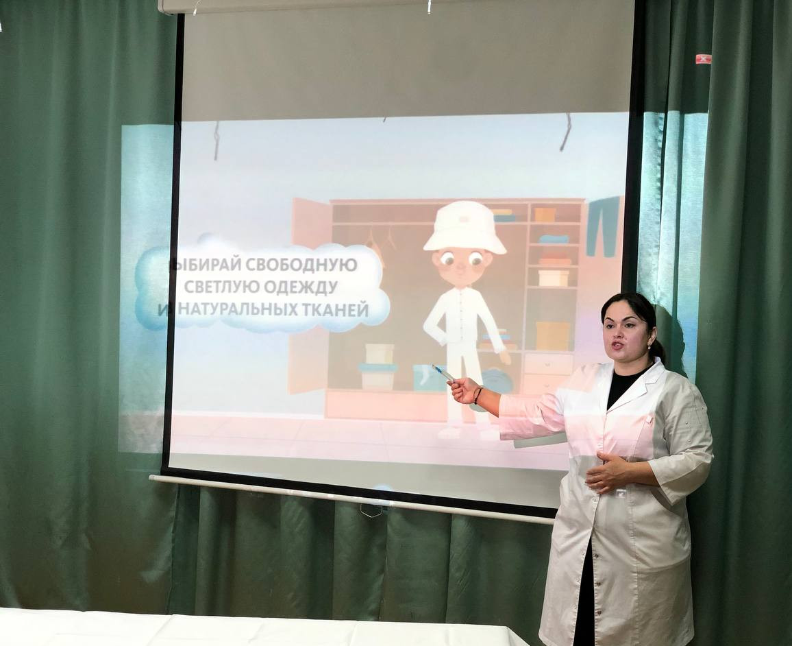 С детьми избербашского реабилитационного медсестра центра Абдурахманова Цибац провела занятие на тему "Солнечный удар".