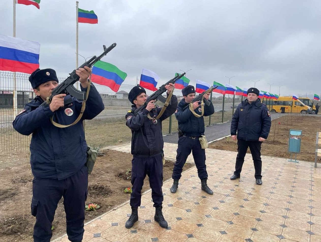? При открытии мемориального пространства была соблюдена славная боевая традиция МО МВД"Кизилюртовский"произвели воинский салют в честь военнослужащих погибших при исполнении воинского долга.