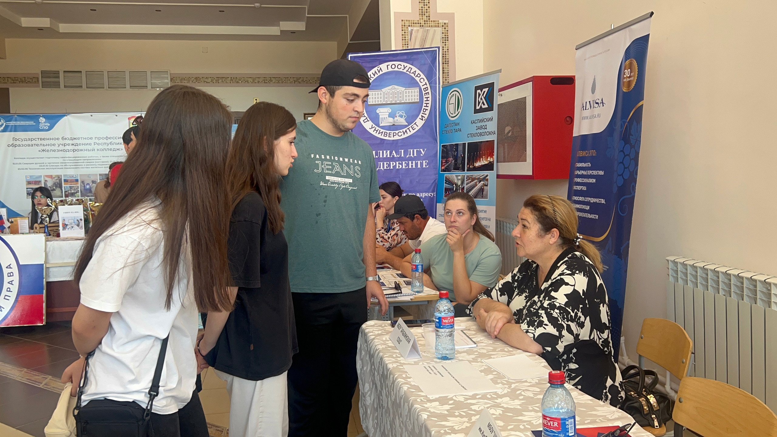 К данному масштабному мероприятию были привлечены работодатели и граждане г.Дербента и Дербентского района. Вакансии для трудоустройства предложили 10 работодателей Дербентского района, которые представили свои организации и рассказали об имеющихся у них вакансиях, в их числе: «Колхоз им А. Алиева» Дербентского района, ООО «Алвиса», «Хазарская СОШ», МБОУ Школа - сад Нижний Джалган им. Курбанова С.Д. , АО им. Н. Алиева, Джалганская СОШ, ГКУ РД ЦЗН В МО «Дербентский район» , Администрация МР « Дербентский район» , МБОУ Араблинская СОШ , ООО «Виноградарь». В общей сложности гражданам было предложено около 565 вакансий. В ярмарке вакансий приняли участие 285 соискателей Дербентского района. Безработным гражданам была оказана помощь по составлению резюме.На площадке ярмарки вакансий активное участие приняли такие образовательные учреждения, как: «Дербентский профессионально - педагогический колледж им. Г.Б. Казиахмедова», «Дербентский медицинский колледж им. Г.А.Илизарова», «Колледж экономики и права», «Колледж народных промыслов и туризма», «Аграрный колледж». Ими были представлены интересные мастер-классы, презентации и видеоролики для посетителей ярмарки вакансий. 150 гражданам в возвратите от 14 до 18 лет были оказаны профориентационные услуги.Центр занятости населения «Дербентский район» разыграл 5 подарочные сертификаты от магазина косметики «Визаж Холл».