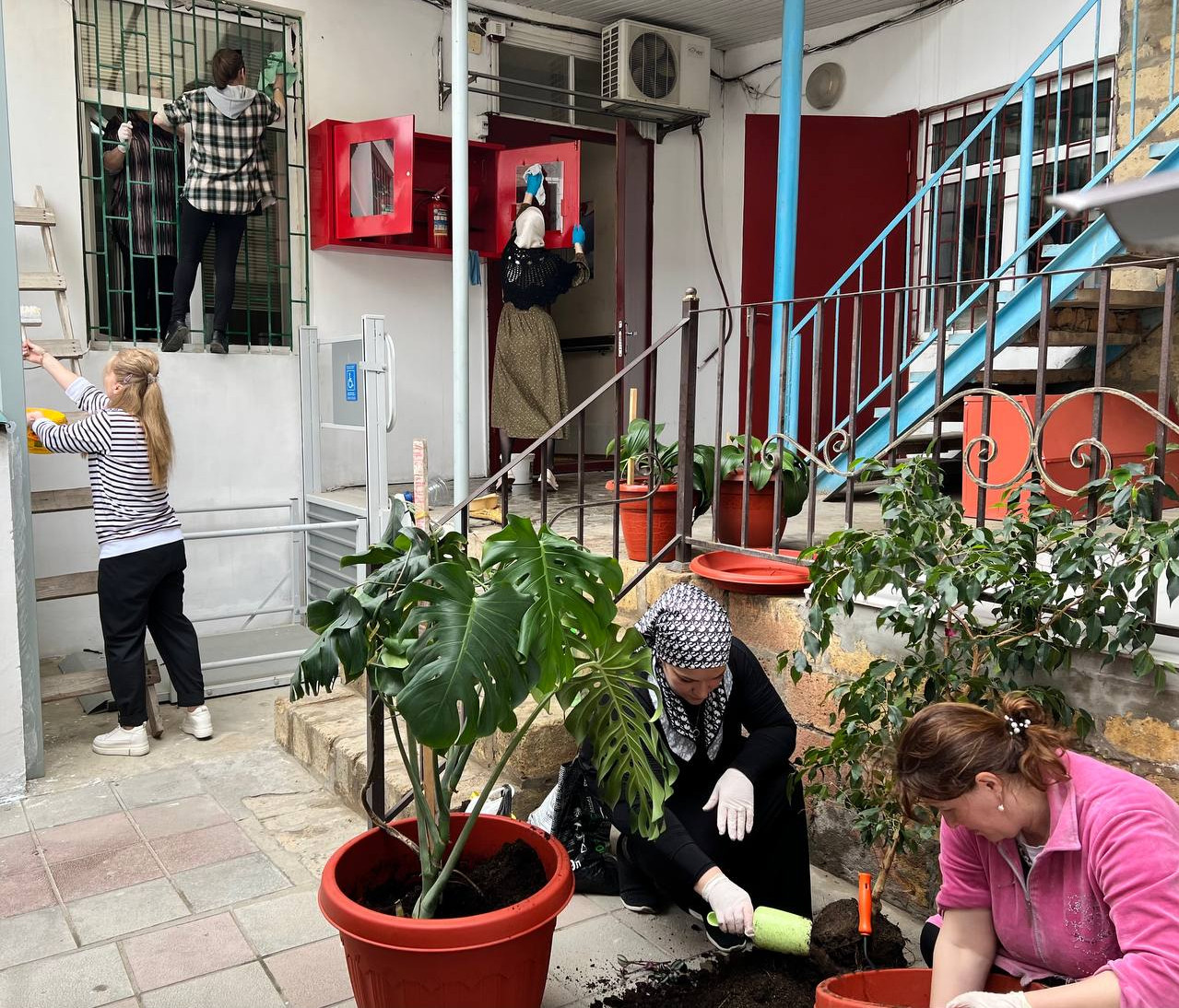 ?Провели работы по побелке зданий социальной прачечной и социальной парикмахерской, покраске входных ворот во двор учреждения,приведена в порядок вся прилегающая территория.