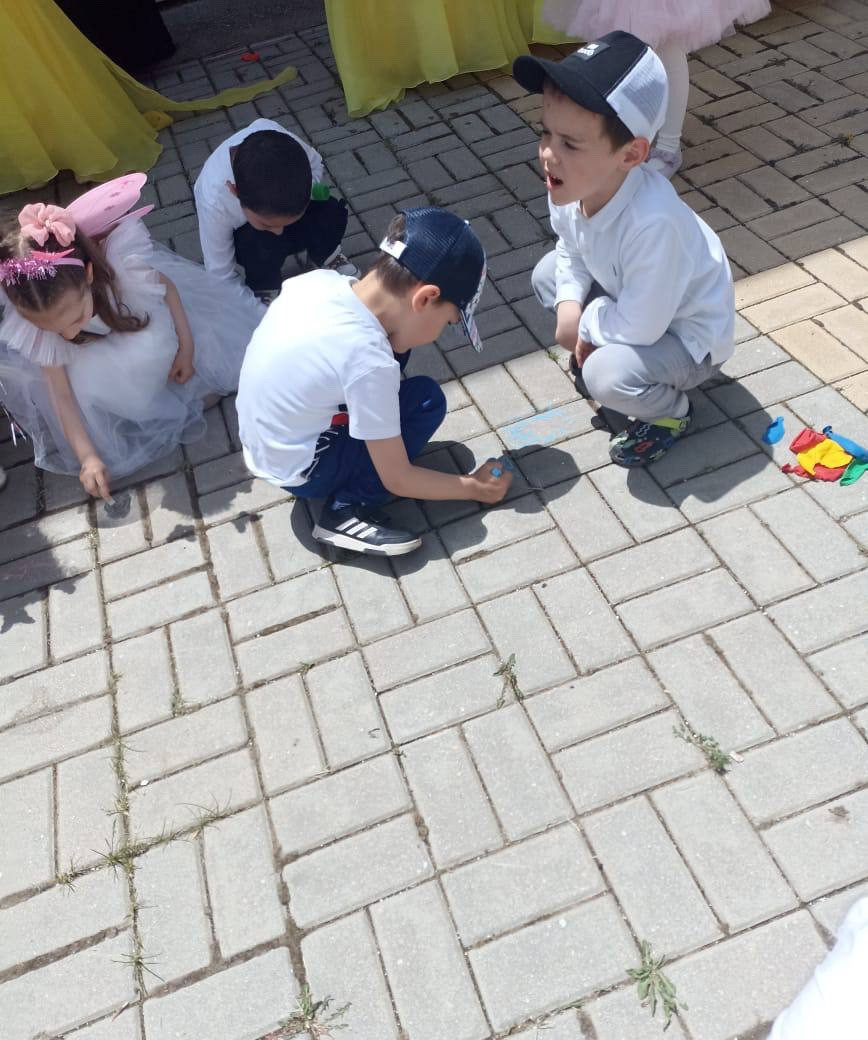 ?Мероприятия прошли весело и красочно. Детки с восторгом пели песни, танцевали , читали стихи , рисовали мелками на дорожке.