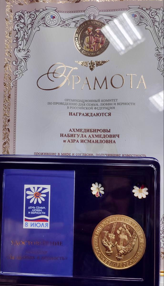 Среди получивших награды – выходцы из села Мехельта Гумбетовского района Набигула Ахмедибиров и его супруга Азра Исубилаева, которые в мире и согласии живут в браке около 45 лет, воспитали трое детей.