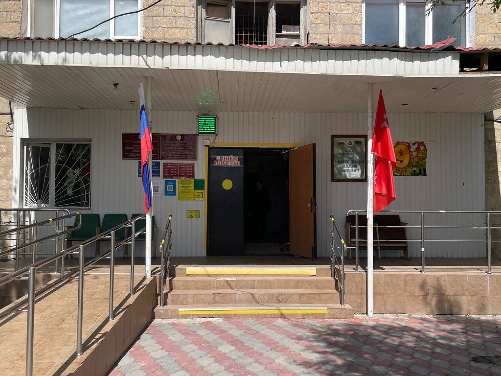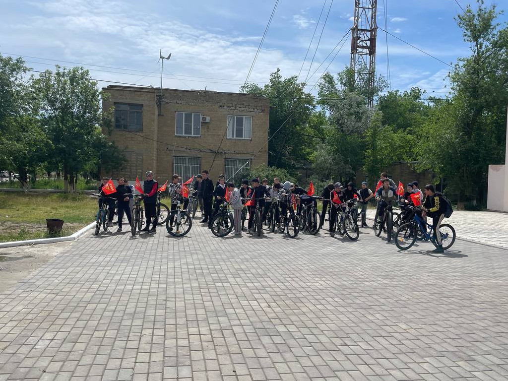 Согласно условиям акции, коллектив управления социальной защиты населения совместно с КЦСОН украсили фасад здания величественным Знаменем Победы.