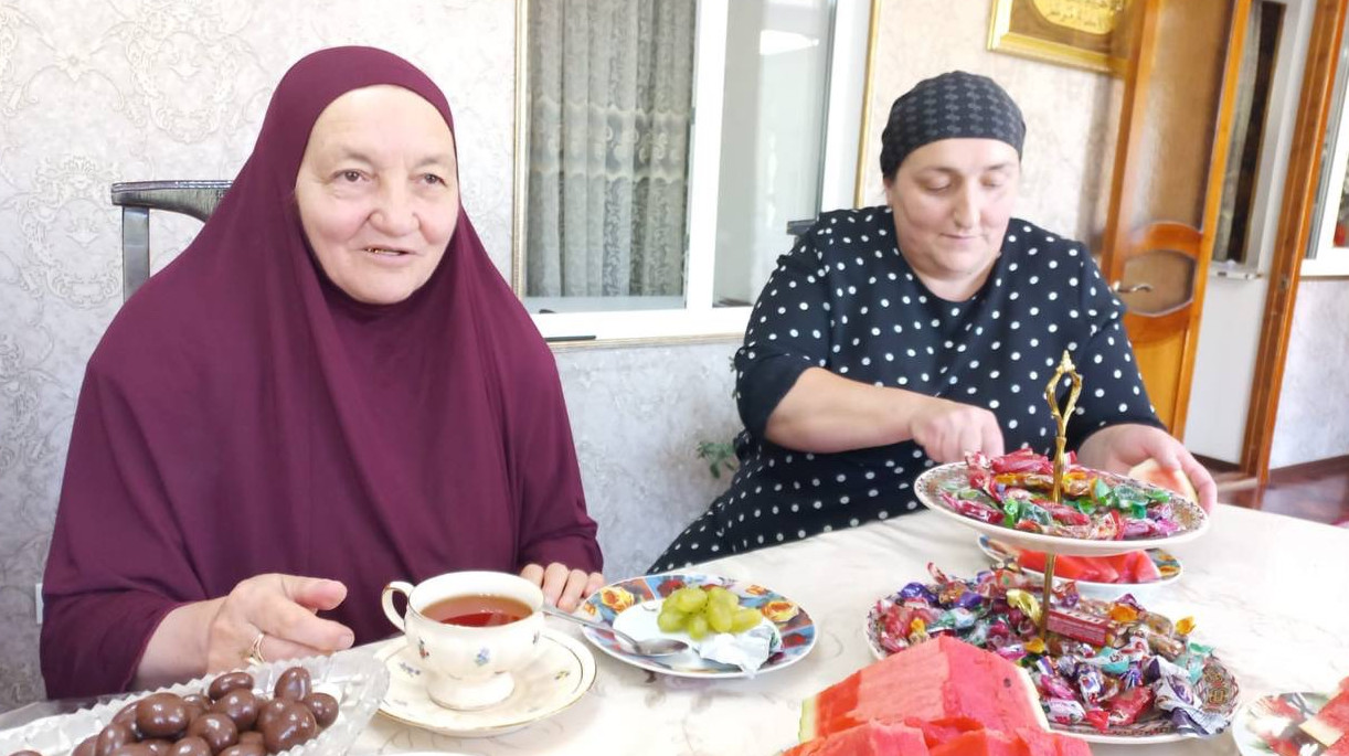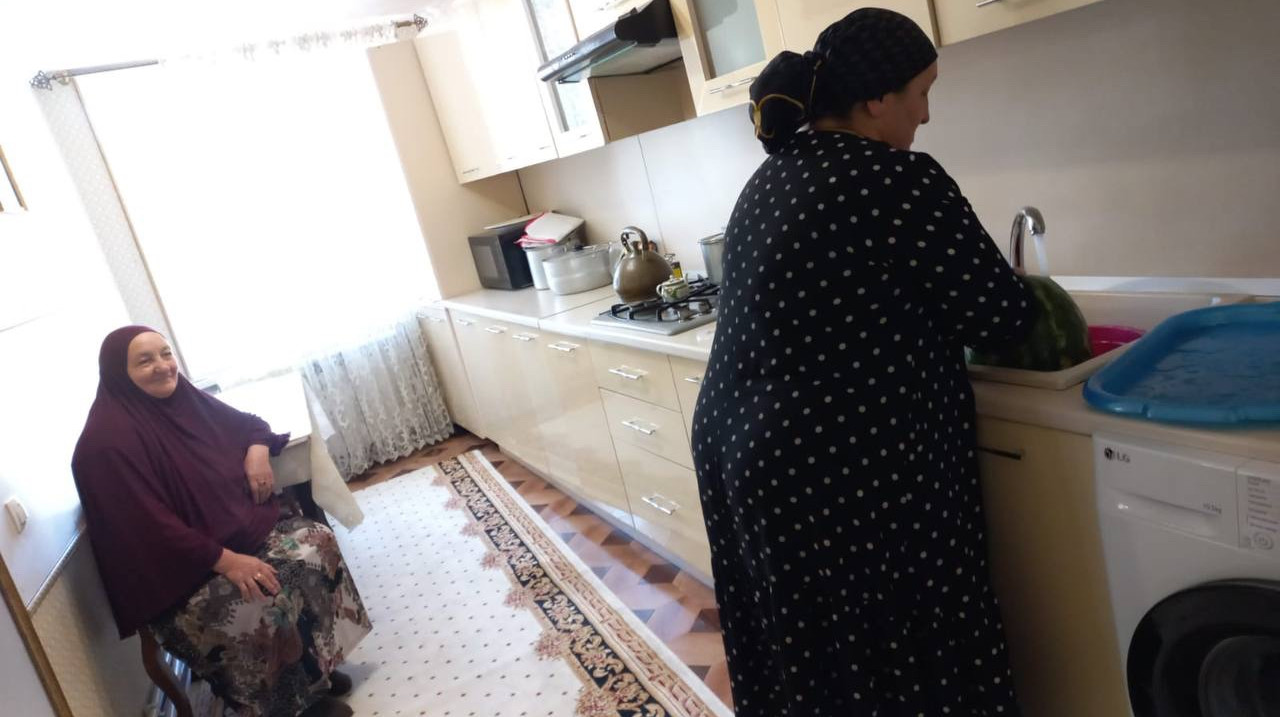 Социальная работница отделения социального обслуживания граждан пожилого возраста и инвалидов на дому КЦСОН Агульского района Магомедова Байранкиз из селения Рича при обслуживании получателя социальных услуг Центра.