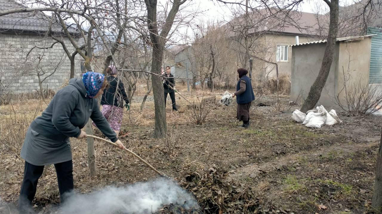 9 марта, в рамках реализации социально-инновационной технологии, социальные работники 3-отделения социального обслуживания на дому граждан пожилого возраста и инвалидов: Шалиева П.Р., Зухрабова С.Г., Алиханова А.А.,Исмаилова Р.Ш.,Юсуфова Х.Э. провели субботник в доме у получателей социальных услуг - супружеской пары Алиева Д.А. и Алиевой Х.А. из с.Ахты.