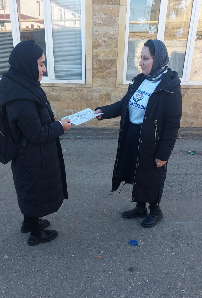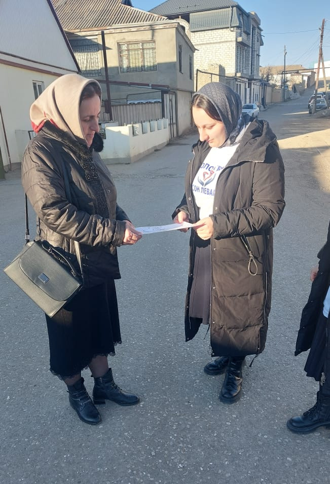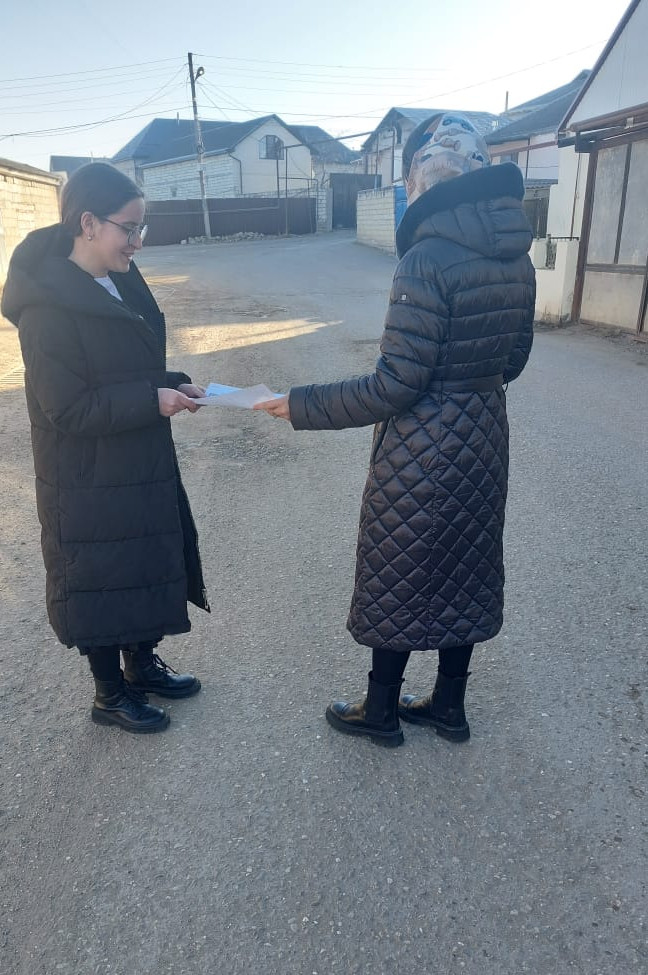 Социальный педогог надомного отделения ГБУ РД КЦСОН в МО "Левашинский район" Магомедова Рукият совместно со специалистом Магомедовой Марьям и волонтёрами распространили памятки-листовки "Меры безопасности при террористической угрозе ".
