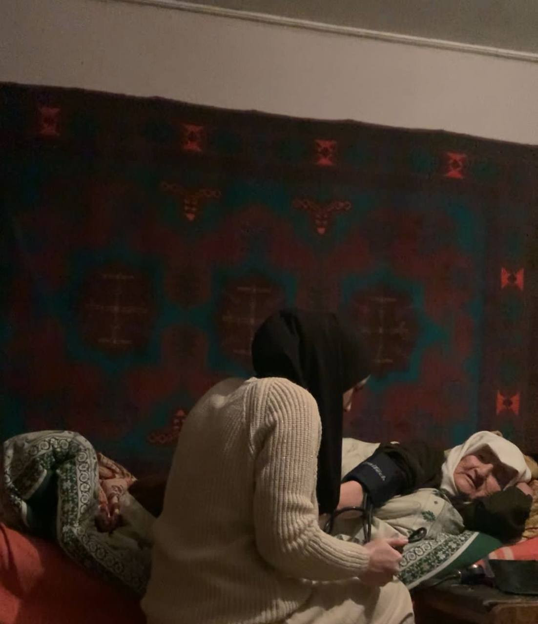 Социальный работник 1 отд. СО на дому Муртазалиева Марият при оказании социально-медицинских услуг подопечной.