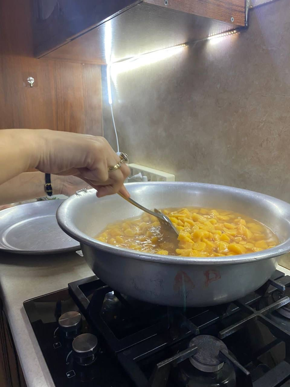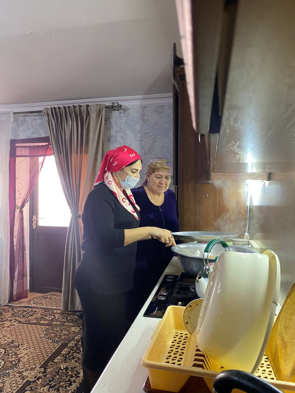Социальный работник Закарьяева Зумруд варит варенье из айвы на зиму и готовит рыбу для своей подопечной.