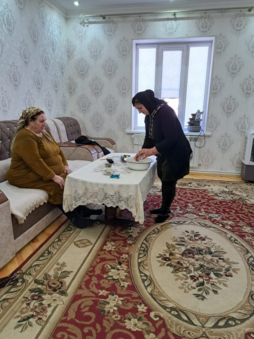 Социальный работник отделения социального обслуживания на дому Алибекова Мукминат оказывает подопечной КЦСОН Сулейман-Стальского района социально-бытовые услуги.