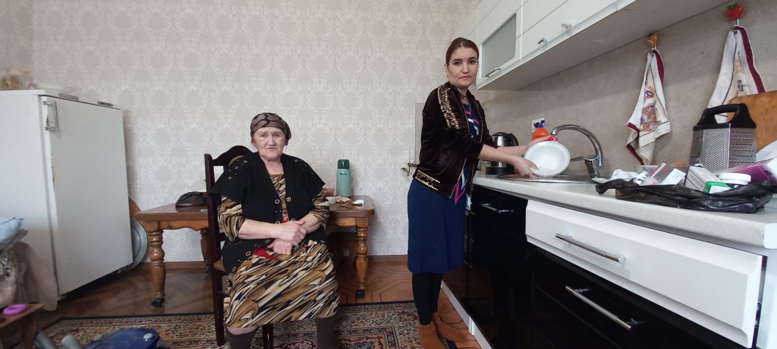 На фото Гапизова Сабият Гасбуллаевна, социальный работник отделения социального обслуживания на дому граждан пожилого возраста и инвалидов №1 со своими подопечными.