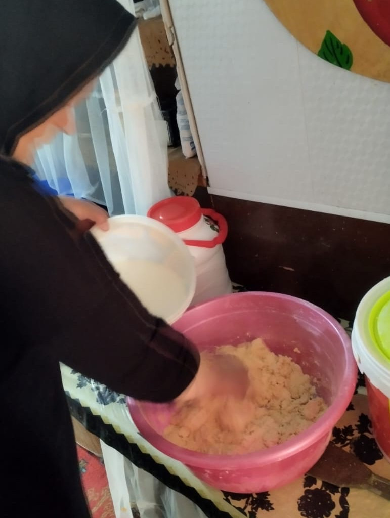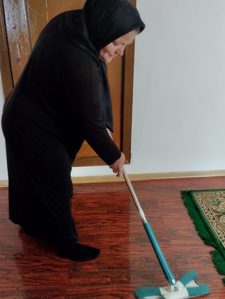 Социальный работник социального обслуживания на дому отделения №4 с.Риквани Патимат Алиева оказывает социально-бытовые услуги подопечной Ахмедхановой Озолу.