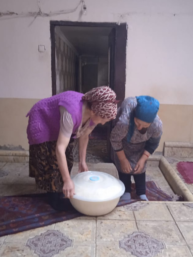 Соцработница навестила свою подопечную Султалиеву Ф. для предоставления бытовых услуг. Пожилой оказала помощь в оказании бытовой услуги, помощь в приготовлении пищи, а именно помогла испечь хлеб в тануре.