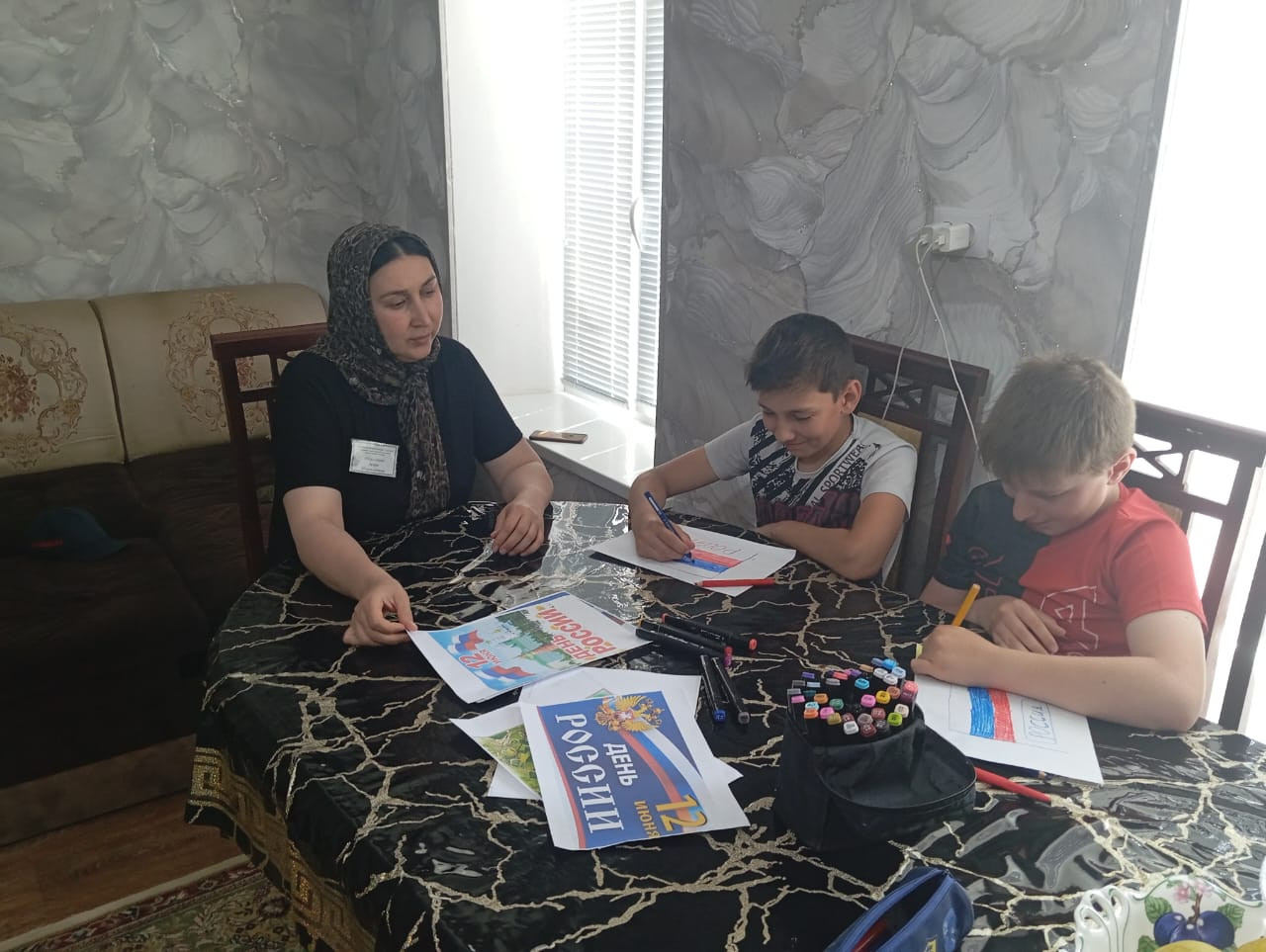 Специалист по работе с семьёй и детьми Абдуллаева Зухра провела беседу и конкурс рисунков ко Дню День России