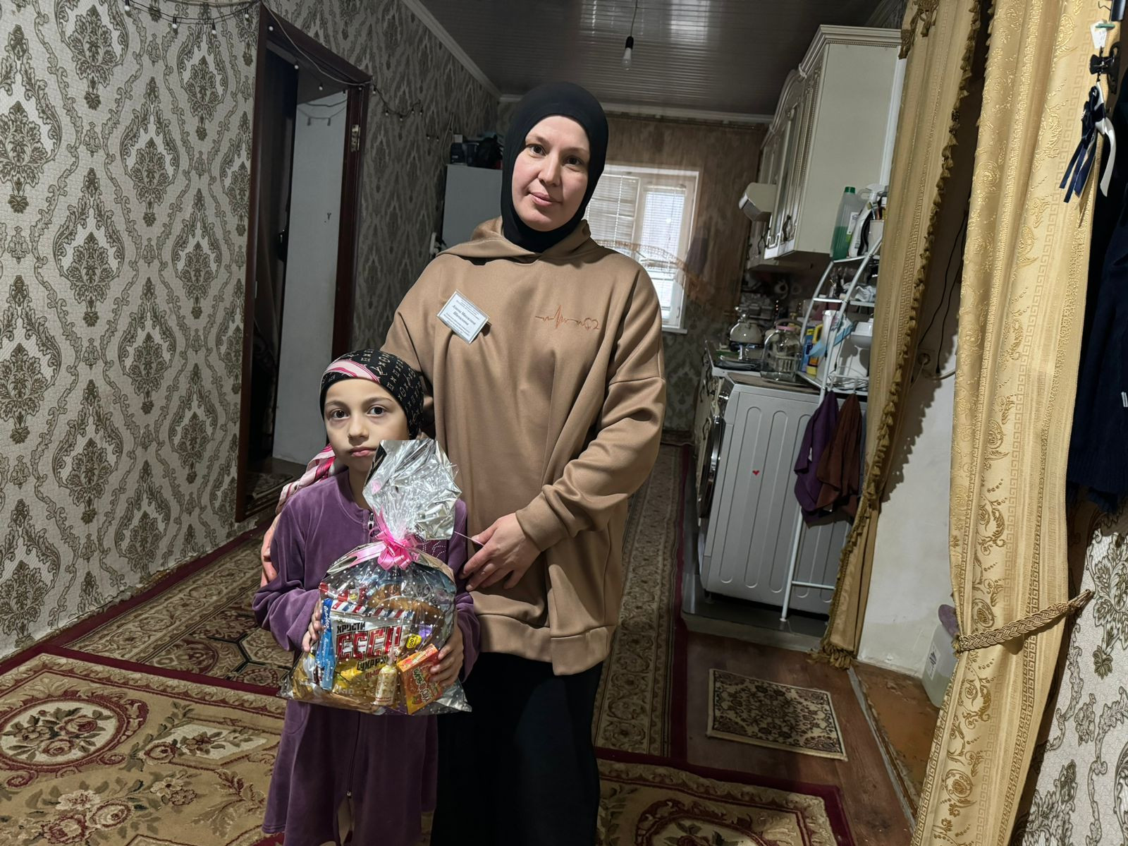 Специалист по работе с семьей и детьми, Алиева Максалина, перед наступлением новогодних праздников поздравила своих подопечных и сделала им радостные сюрпризы в виде сладких подарков.