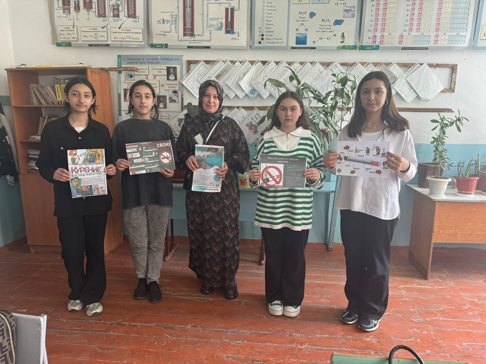 Специалист по работе семьей и детьми Алиева М.провела беседу в школе с учащимися о вреде сигарет