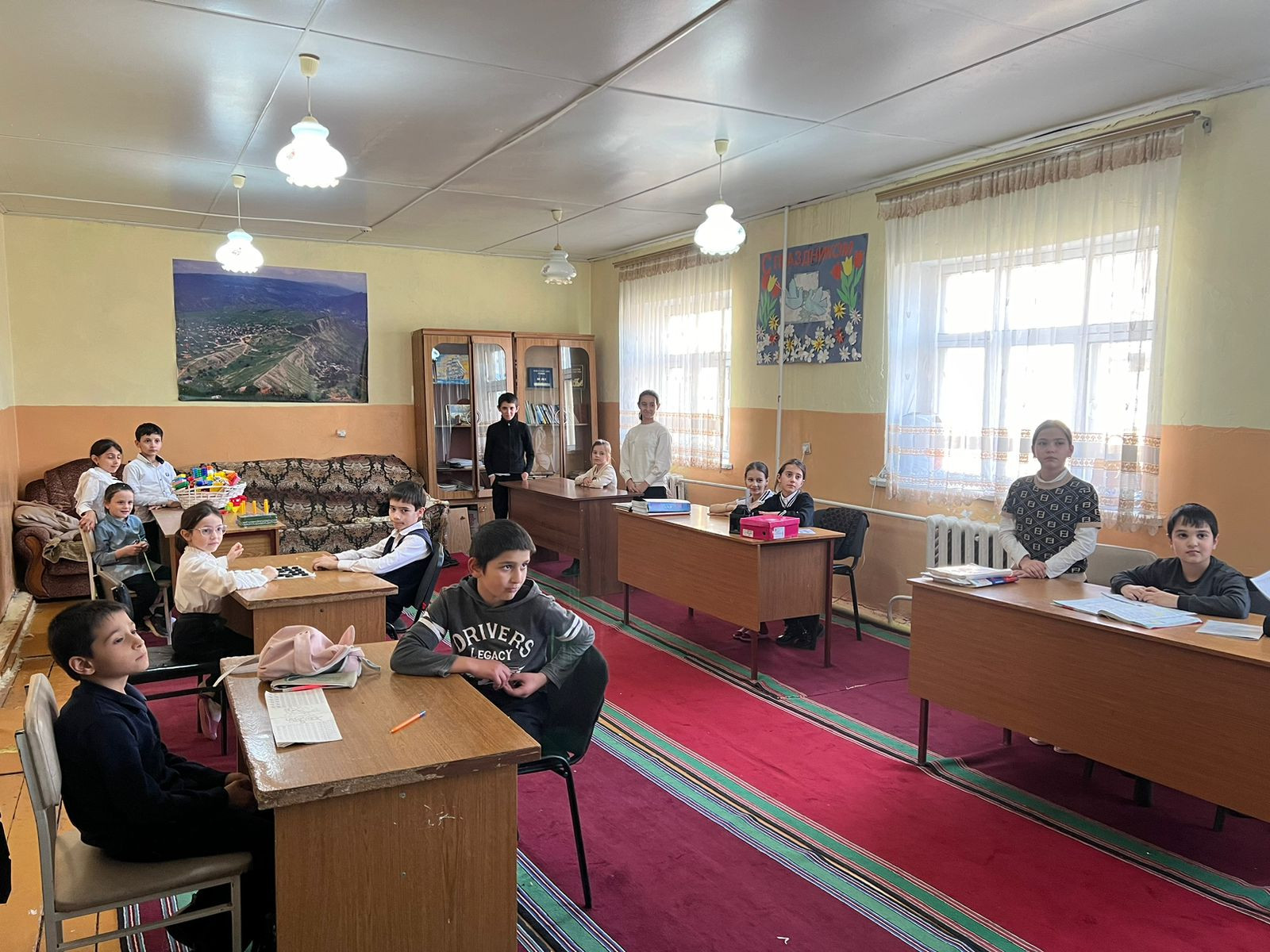 ?Специалист по социальной работе Центра социального обслуживания населения «Левашинский район» Абдурашидова Зайнаб М. провела беседу среди детей посещающие отделение центра на тему: «Мы против насилия и экстремизма». ?целью беседы является: объяснить сущности терроризма, его типы и цели; -совершенствование у школьников знаний о терроризме; -основ безопасности в ЧС; -формирование общественного сознания и гражданской позиции подрастающего поколения.